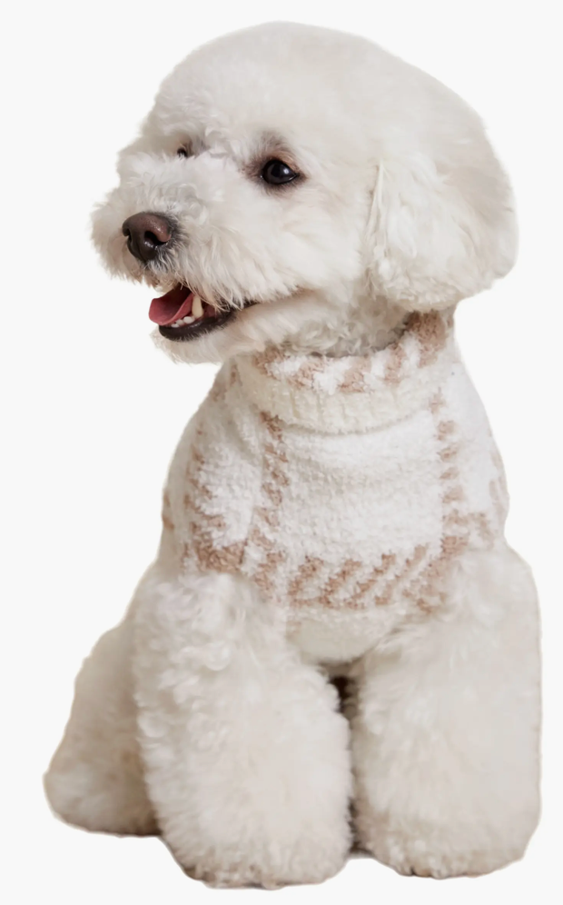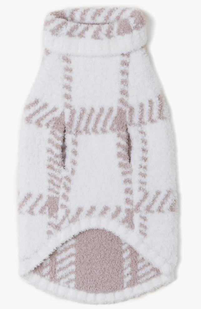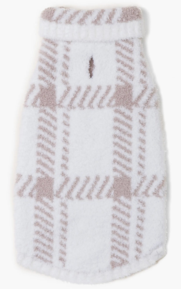 COZYCHIC PLAID PET SWEATER-PEARL/TAN