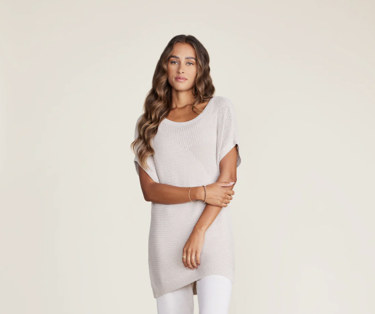 This Mixed Stitch Dolman Pullover gets its name from a technique of combining three different stitches in an angular layout for a sophisticated style. The open neckline, dolman sleeves, and rib finishes at openings make this top an instant classic. With a slightly longer back length, it's perfect for pairing with leggings or wearing over a bathing suit for a resort-ready look. Model is 5'10" and wearing a size S.