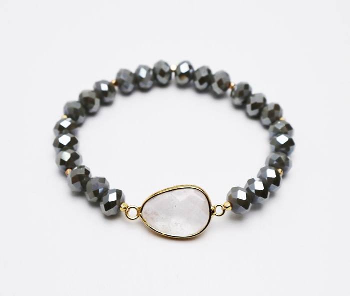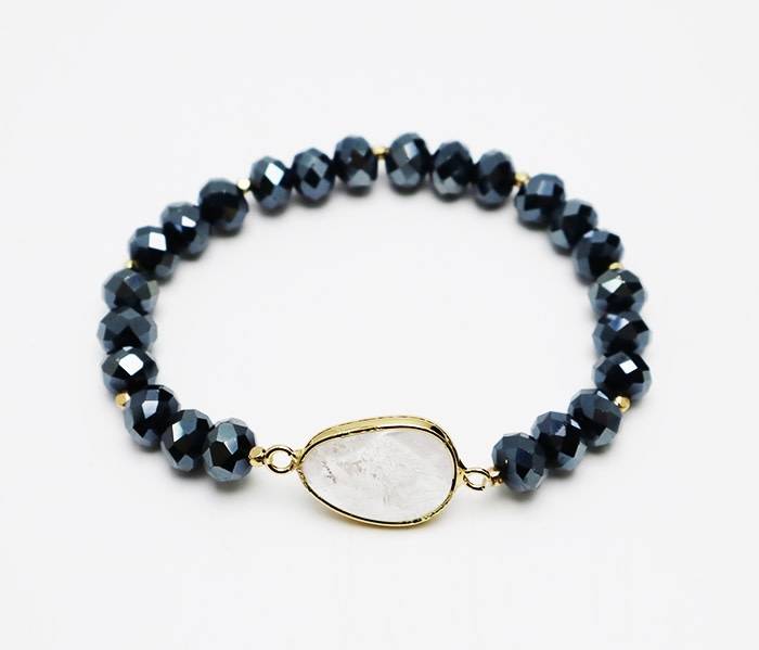 CRYSTAL STRETCH BRACELET W/SEMI PRECIOUS STONE