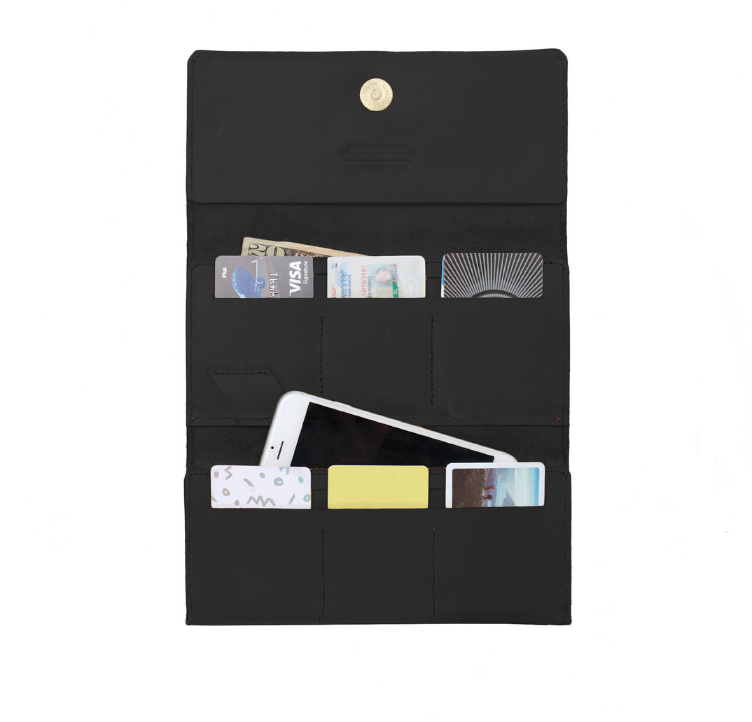 - Features 6 card slots, 3 currency slip pockets, 1 pen slot, and a magnetic closure
