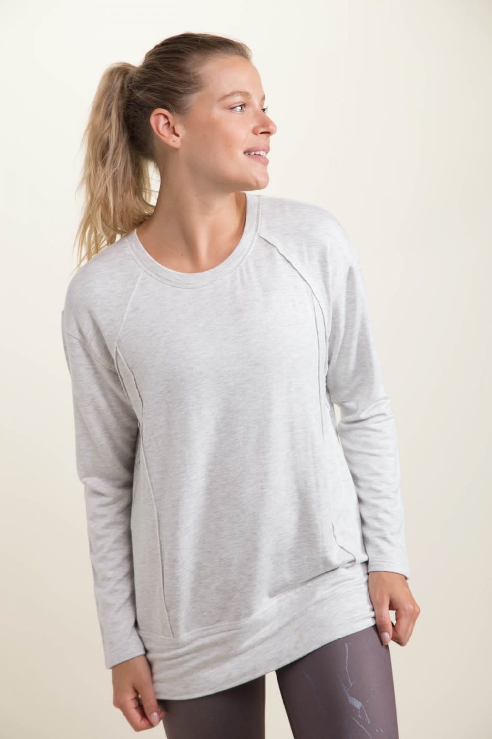 We are not kidding when we tell you how extremely soft this top is. Plus, the inner side is brushed for an even more buttery feel. It features long, Raglan sleeves with exposed seams, a wide hem, a round neckline, and a paneled accent on the front and back, just under the Raglan seamlines.