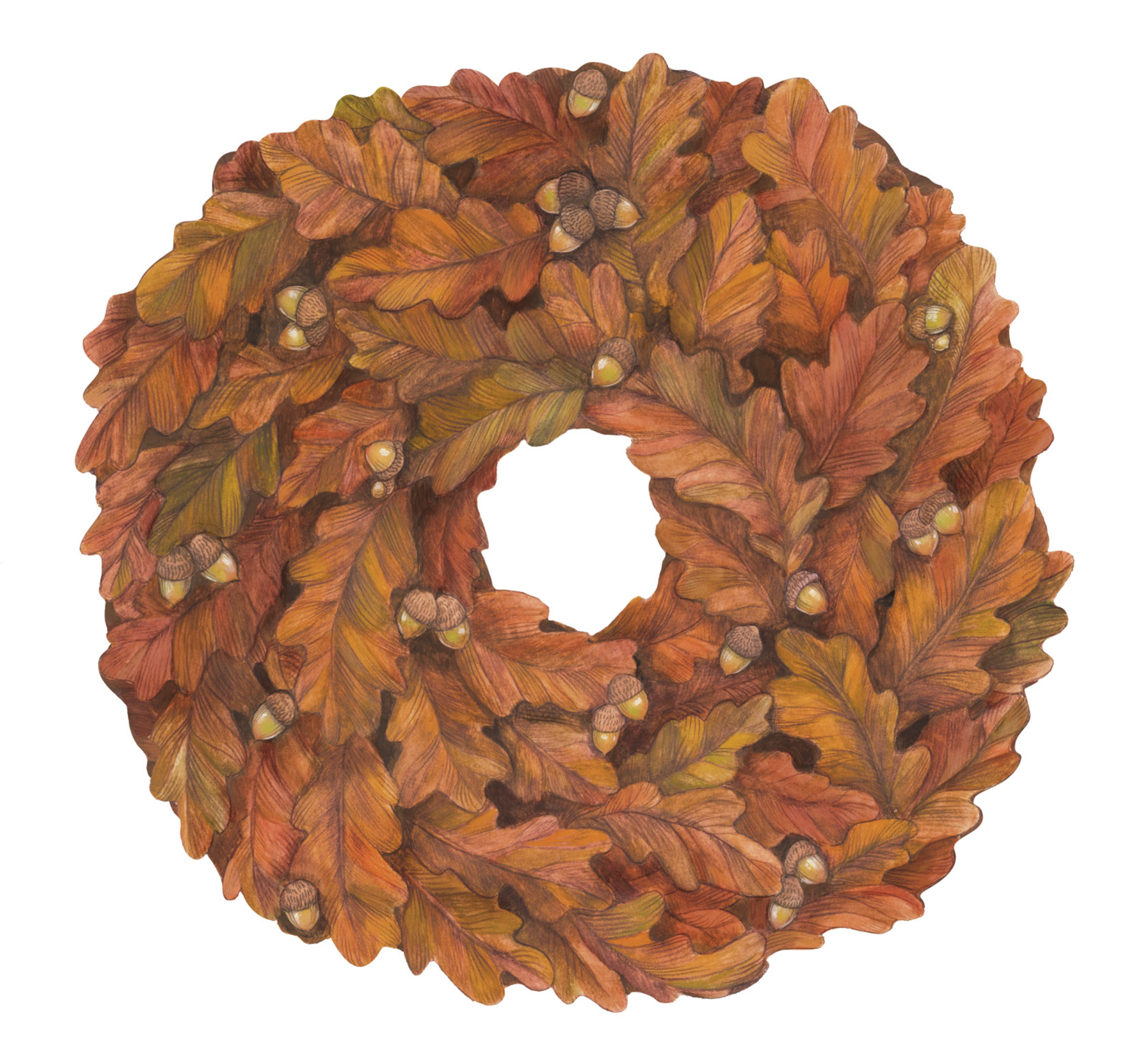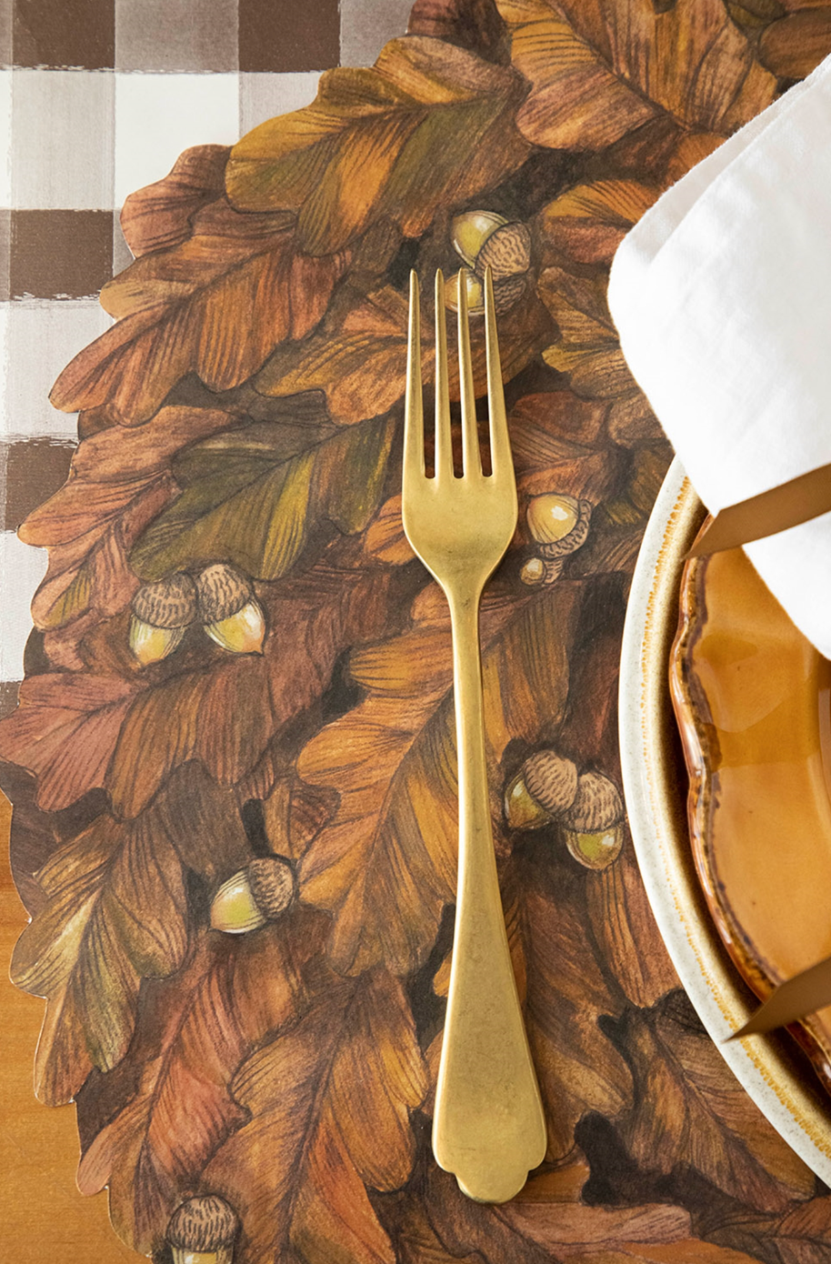 A rainbow of fall colors blooms into this Autumn Wreath placemat, with a swirl of striking oak leaves wrapped perfectly around any plate.