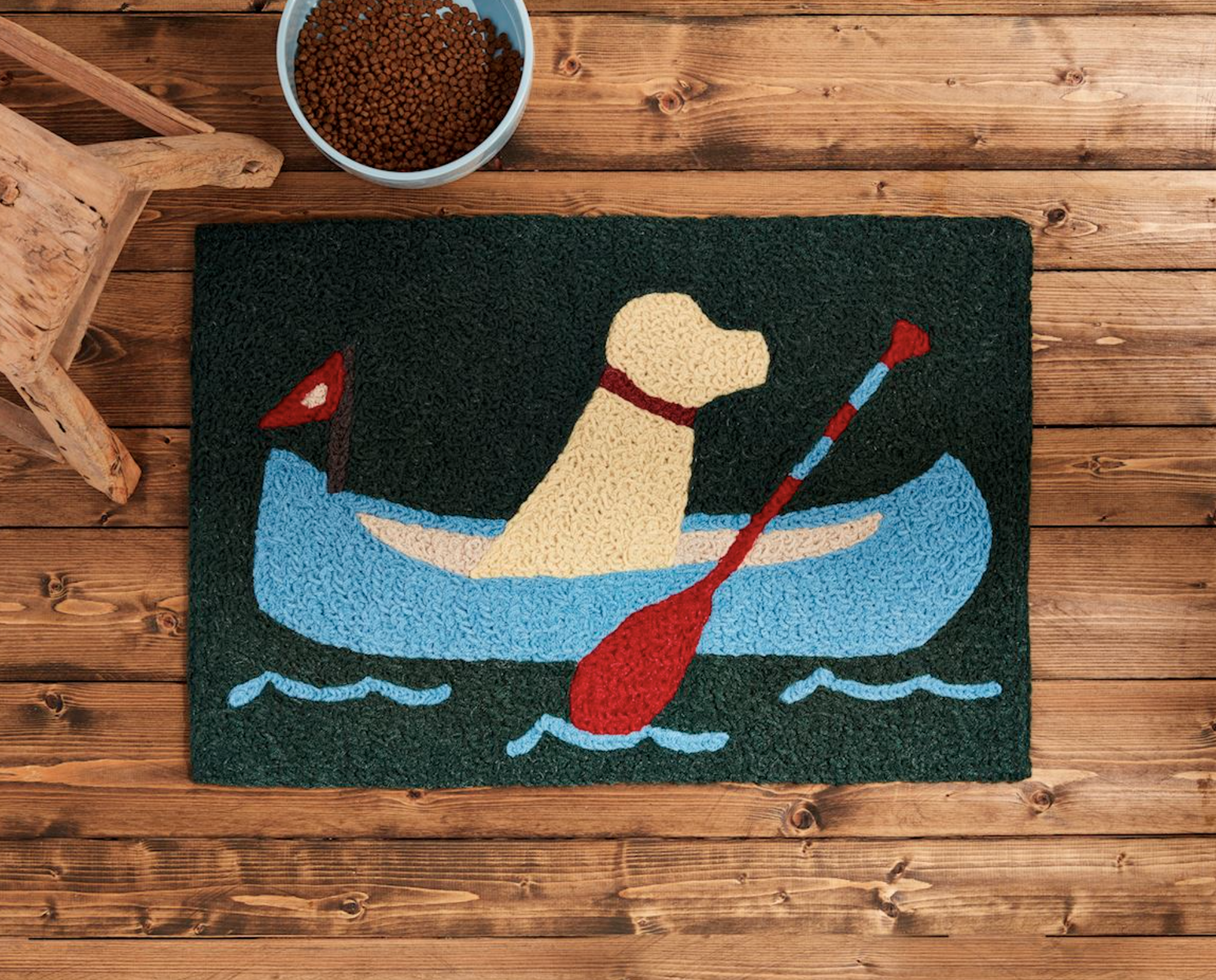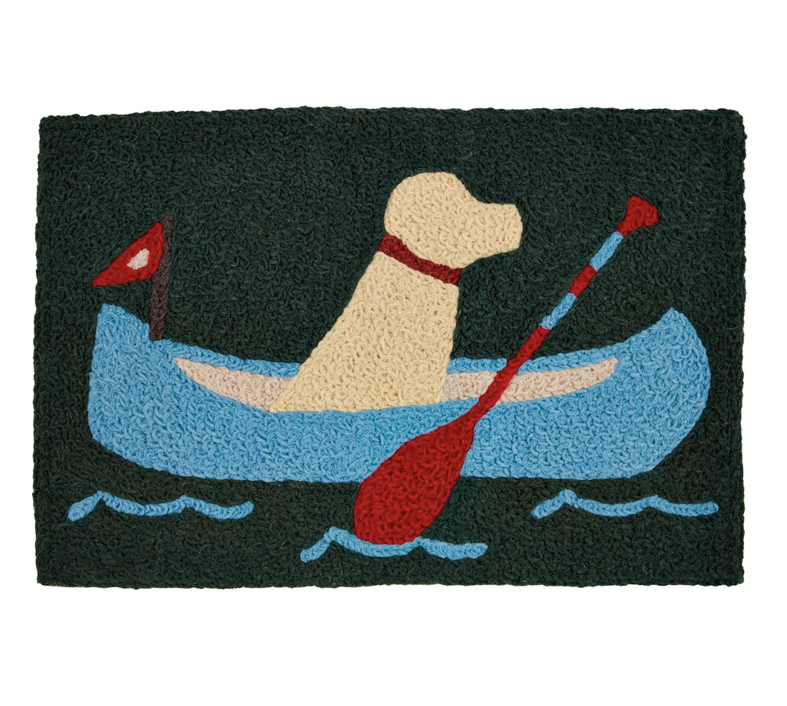 Washable recycled poly yarn throw rug with non-skid felt backing.