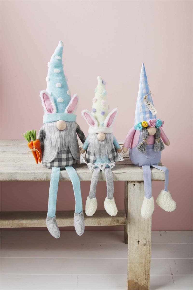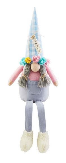 Felt, cotton and canvas gnome features weighted dangle legs.