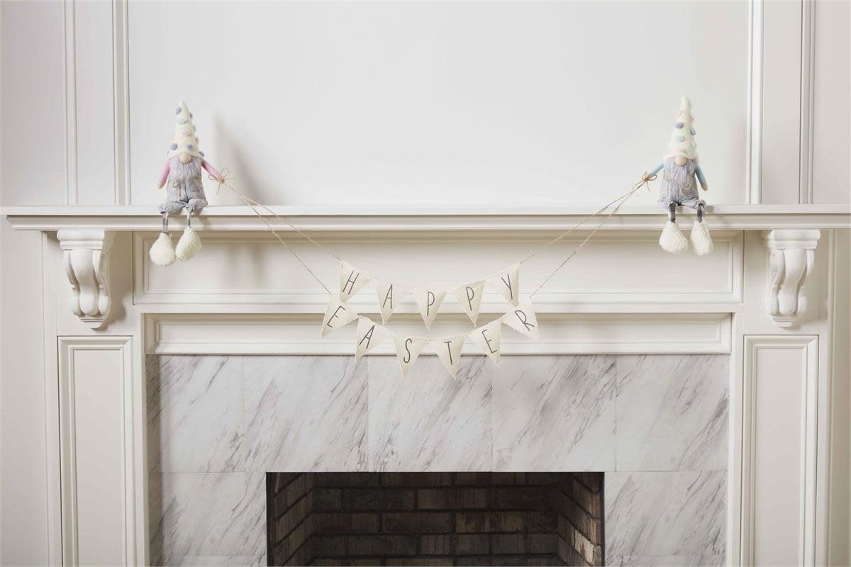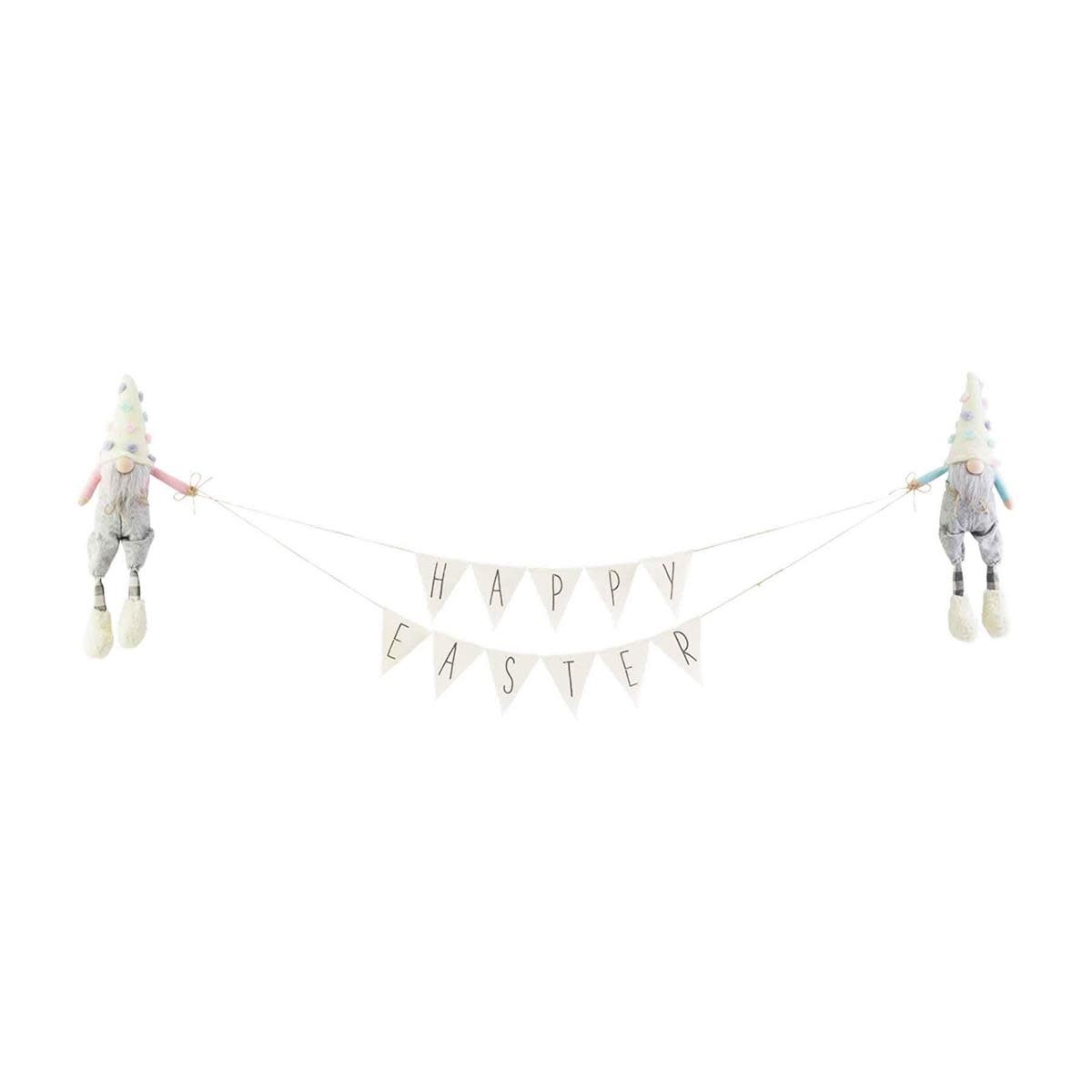 Weighted felt, cotton and canvas gnomes hold canvas pennant flag.