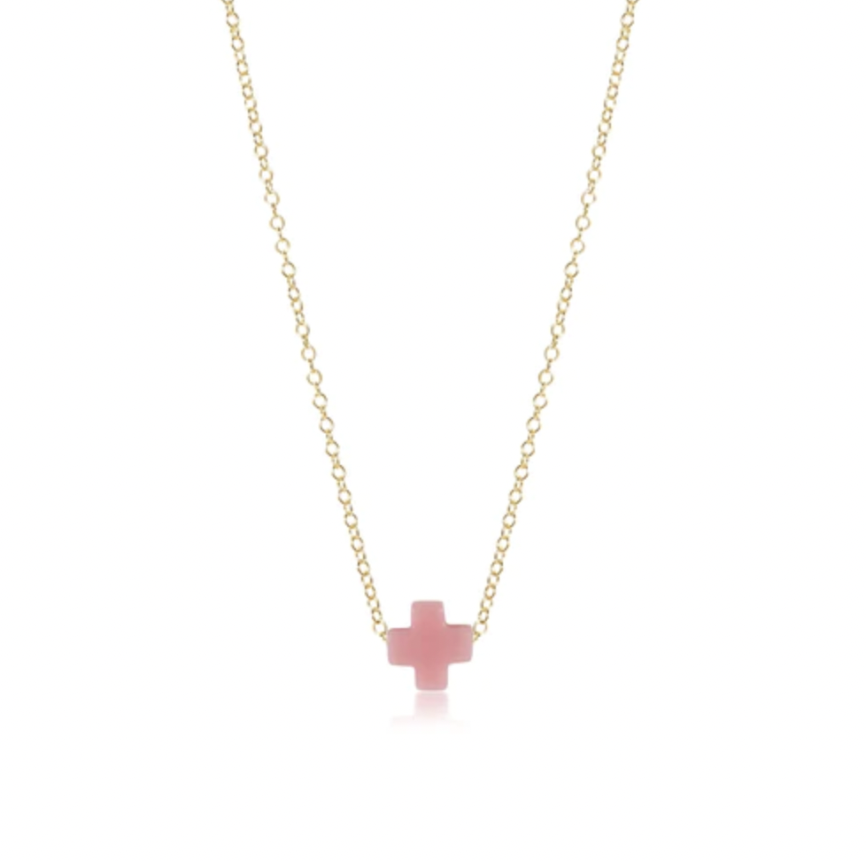 EGIRL 14" NECKLACE GOLD-SIGNATURE CROSS-PINK