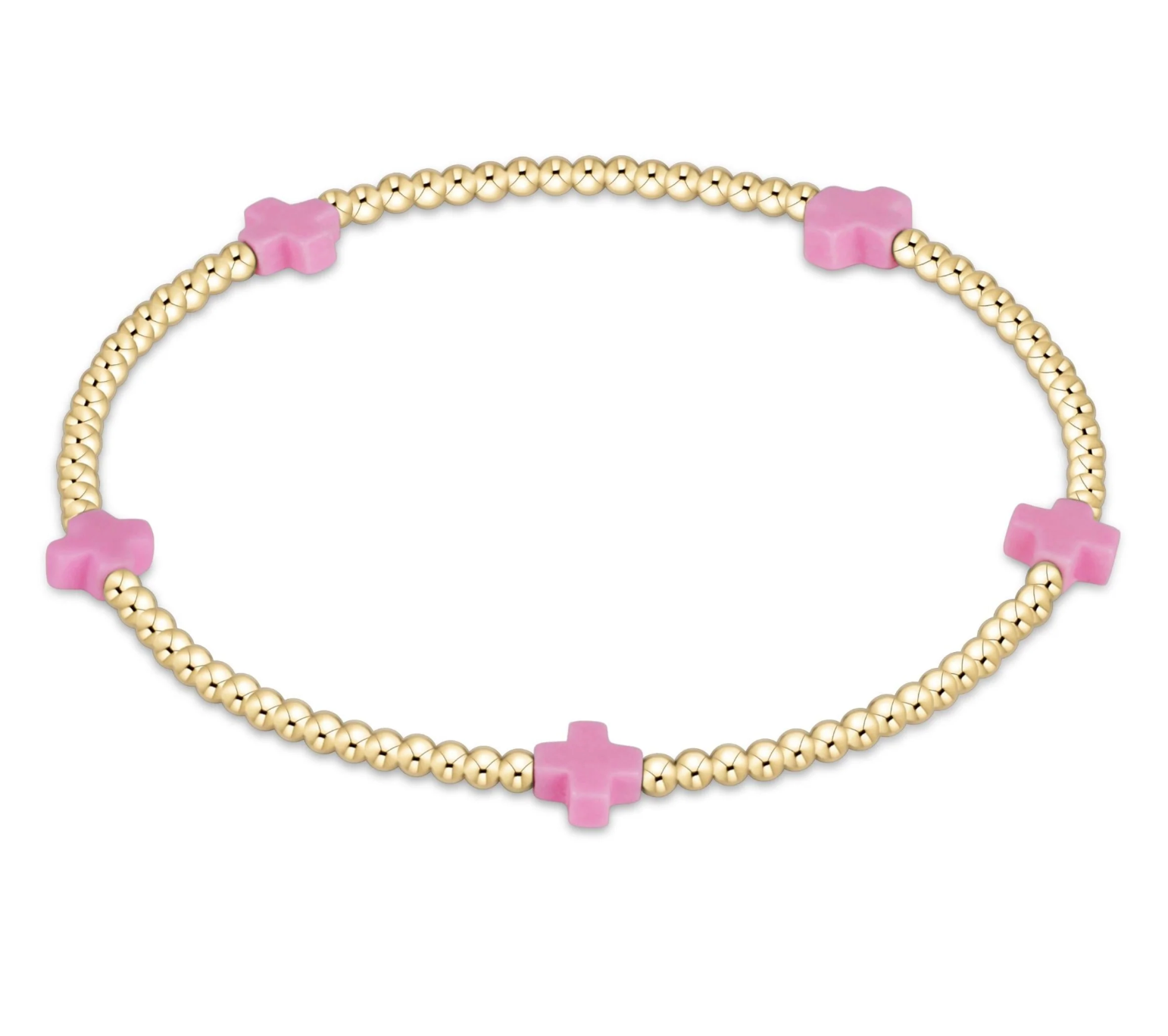 egirl Signature Cross Small Gold Pattern 2mm Bead Bracelet - Bright Pink