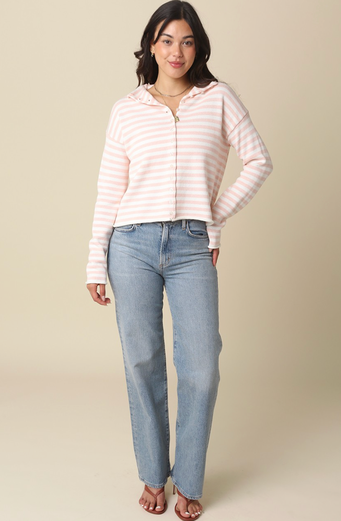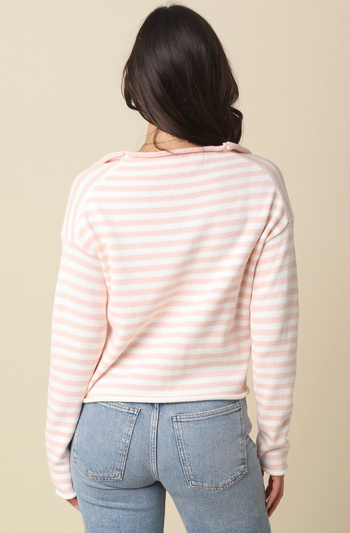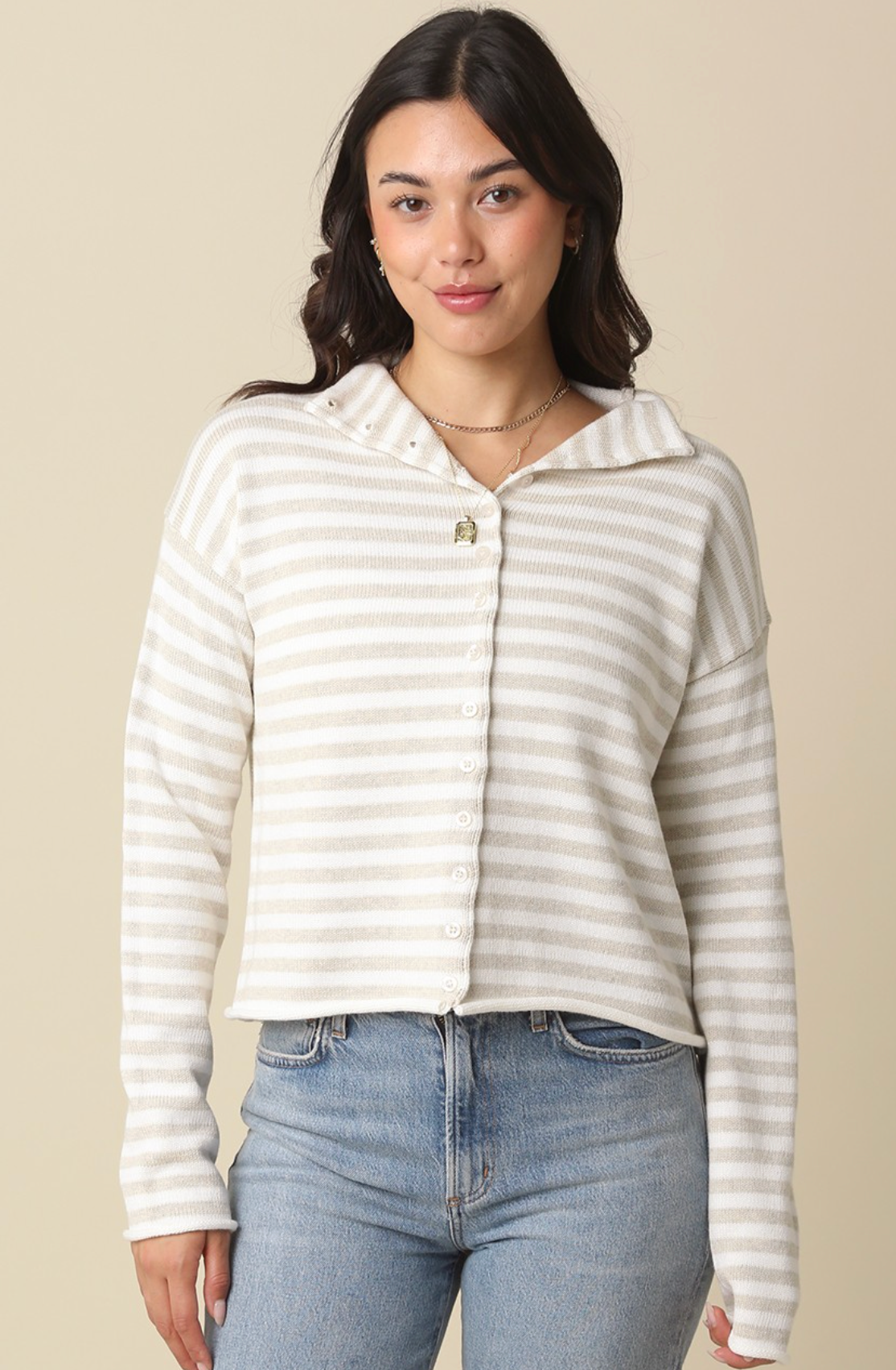 ELINA STRIPED COLLAR KNIT CARDIGAN