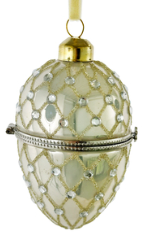 EMBELLISHED EGG JEWELRY BOX ORNAMENT-WHITE
