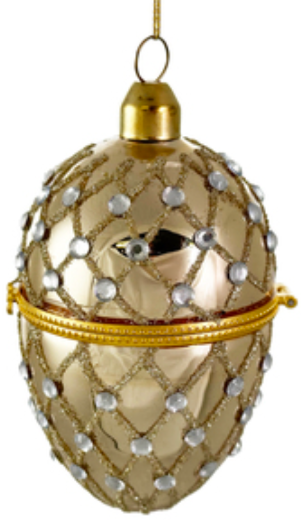 EMBELLISHED EGG JEWELRY BOX ORNAMENT-GOLD