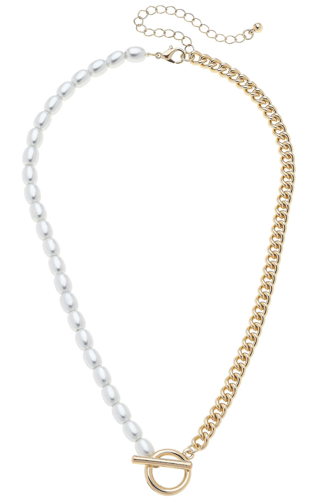 ESTELLE PEARL TOGGLE HALF AND HALF NECKLACE
