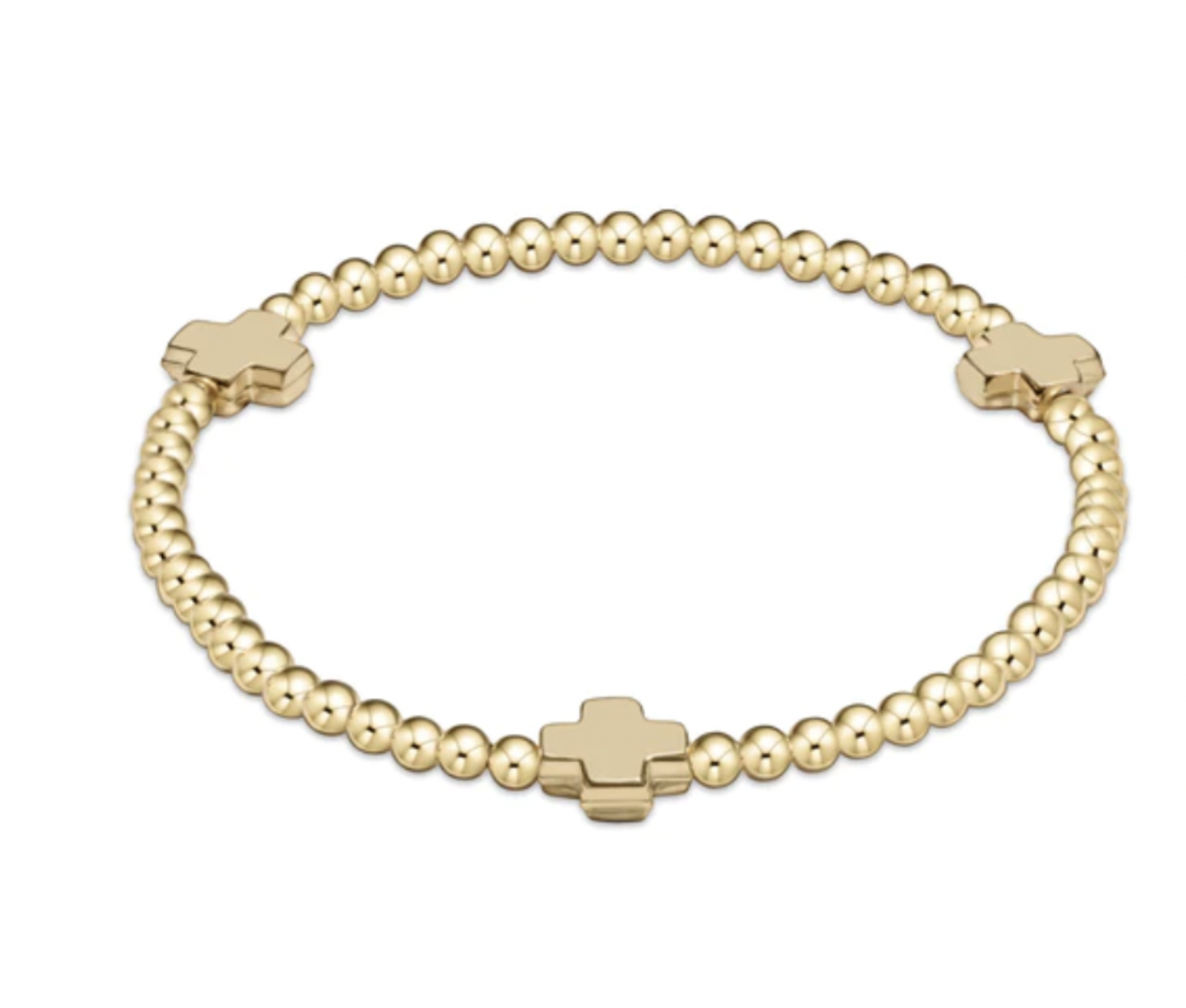 EXTENDS SIGNATURE CROSS GOLD PATTERN 3MM BEAD BRACELET