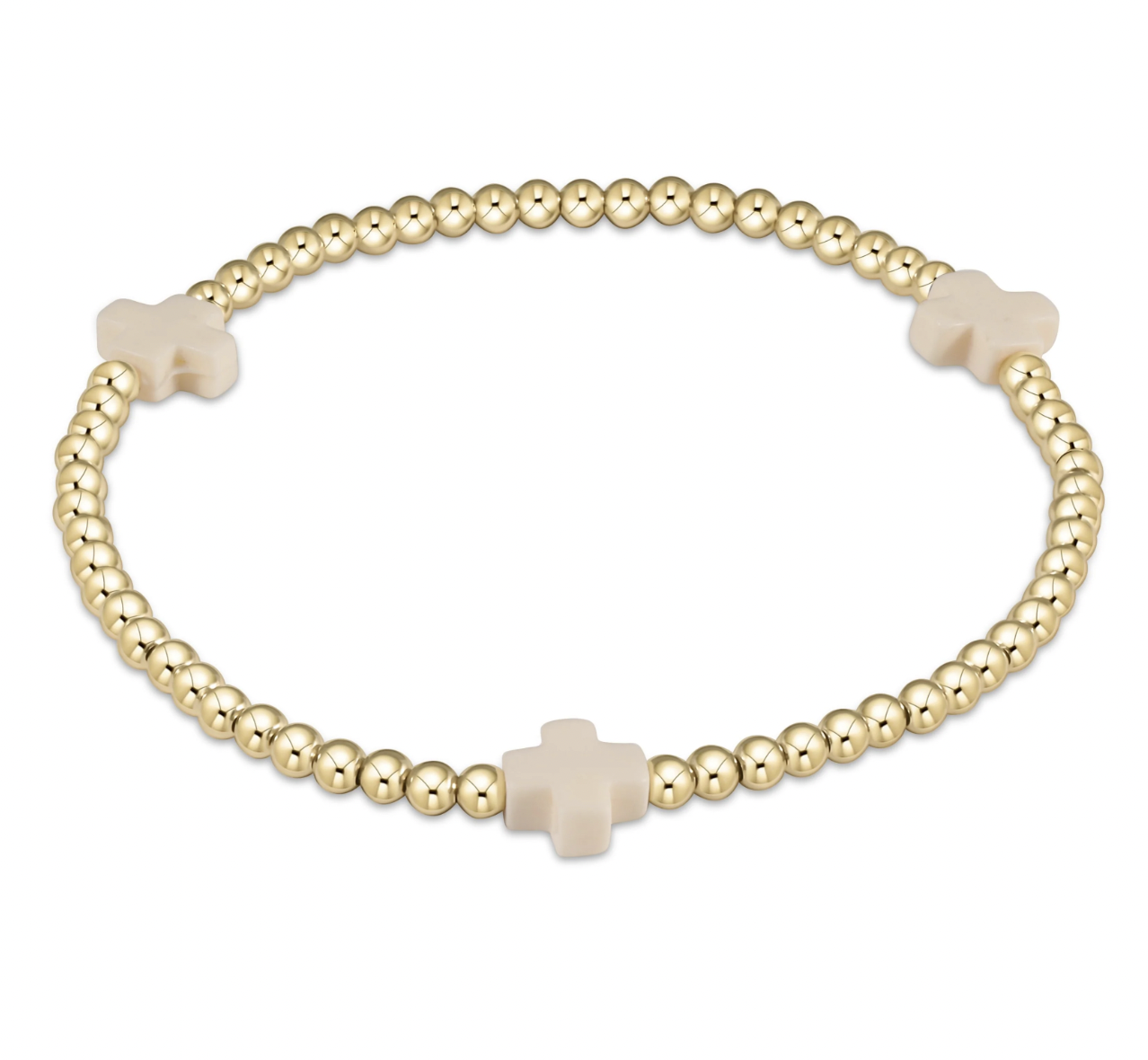 EXTENDS SIGNATURE CROSS GOLD PATTERN 3MM BEAD BRACELET - OFF-WHITE