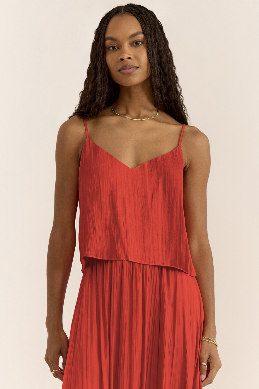 FIORE CRINKLE SATIN TANK-CABANA RED