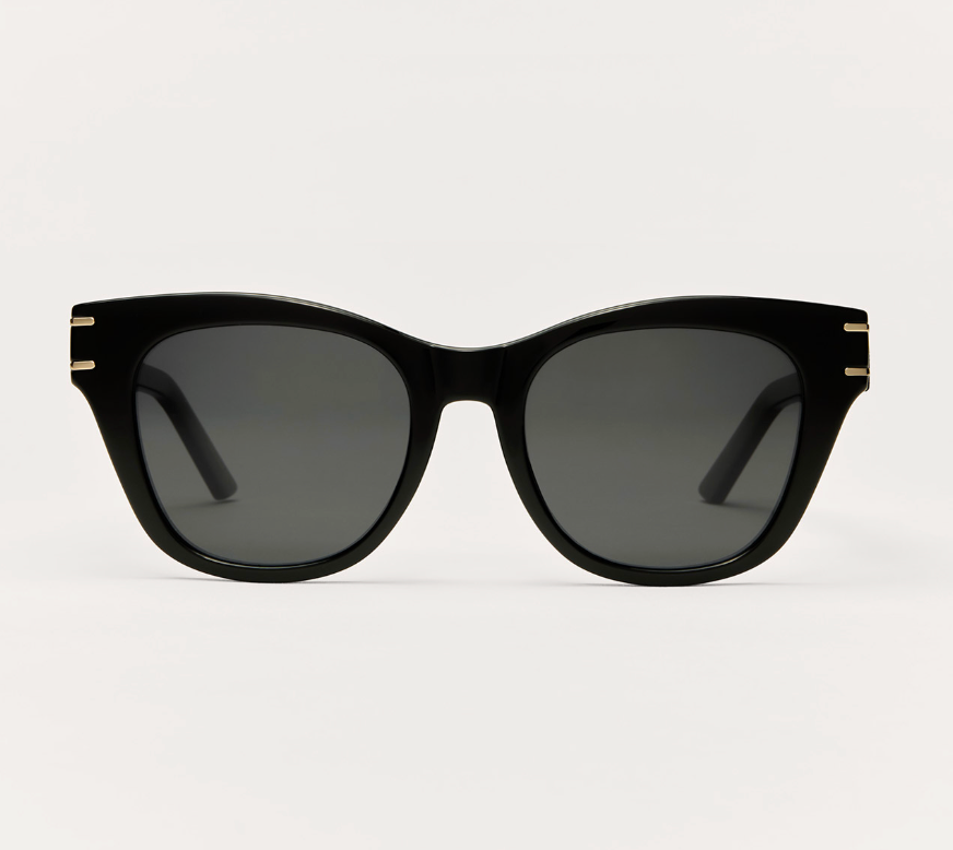FRONT ROW-POLISHED BLACK GRAY POLARIZED SUNNIES