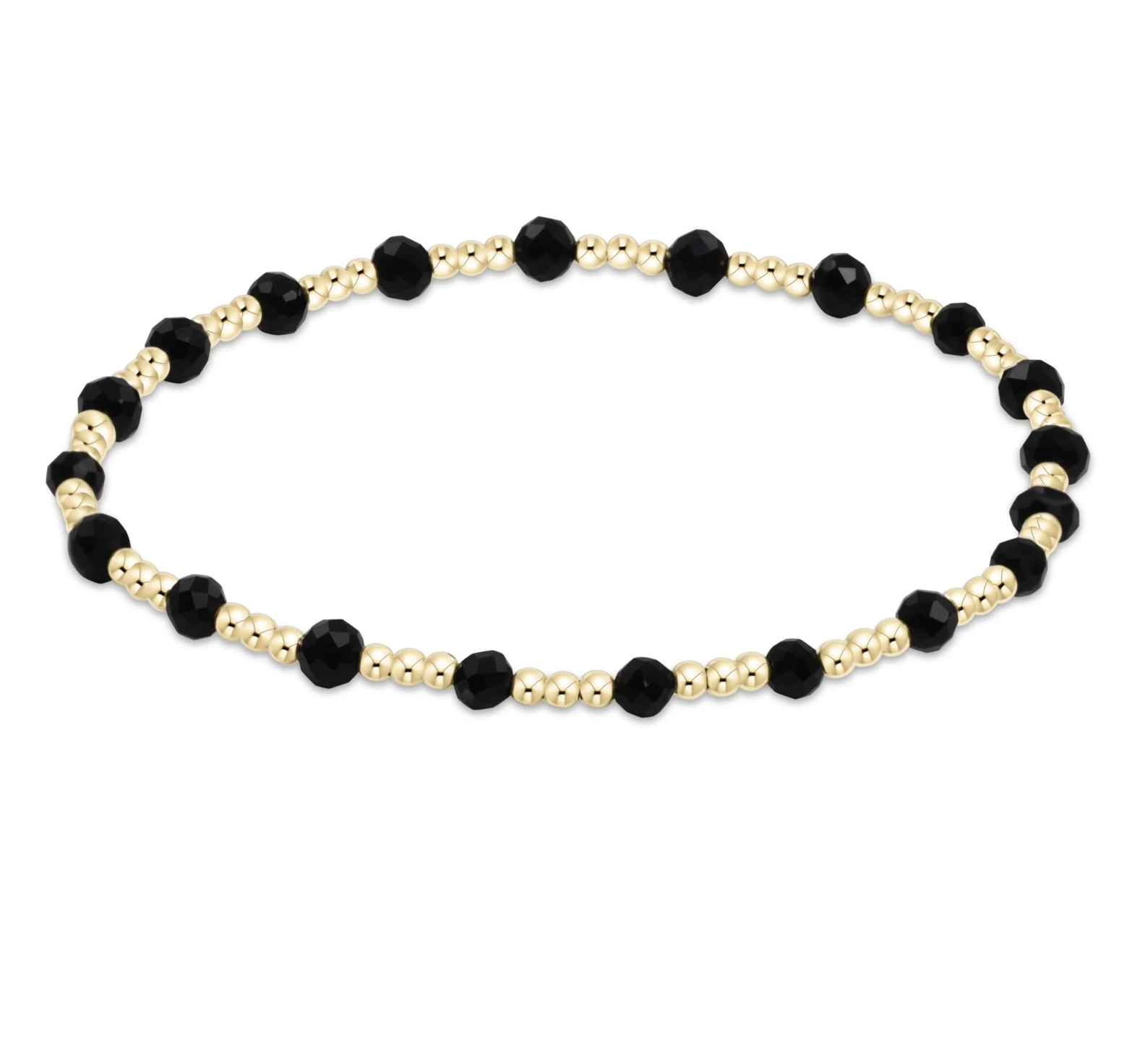 Gemstone Gold Sincerity Pattern 3mm Bead Bracelet - Faceted Onyx