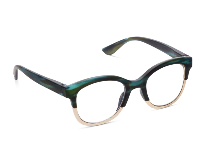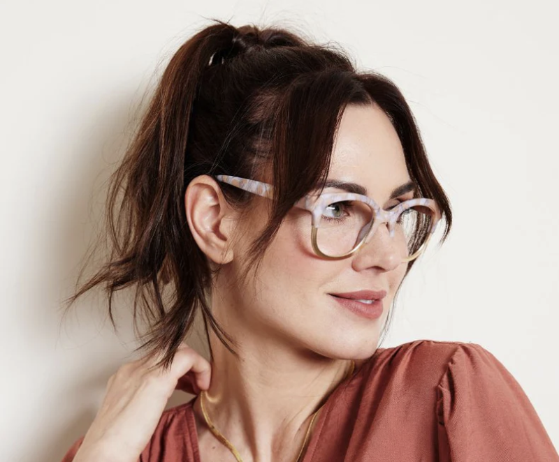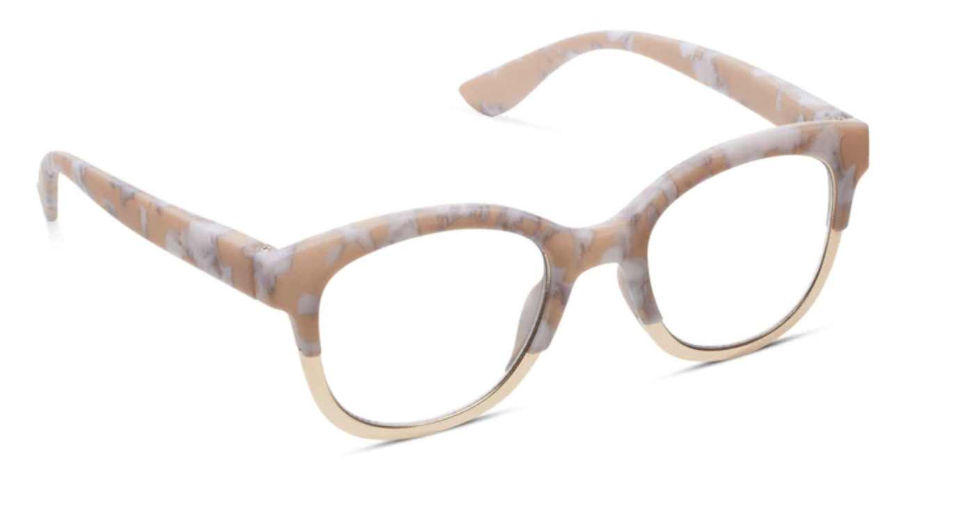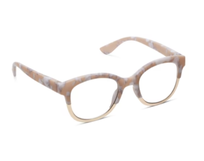Experience understated elegance with these soft square frames. Georgia combines luxe metallic detailing with a palette inspired by nature's earthy tones such as marble, horn, and tortoise shell.
