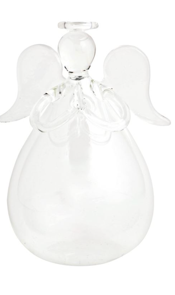 Handblown glass angel bud vase.