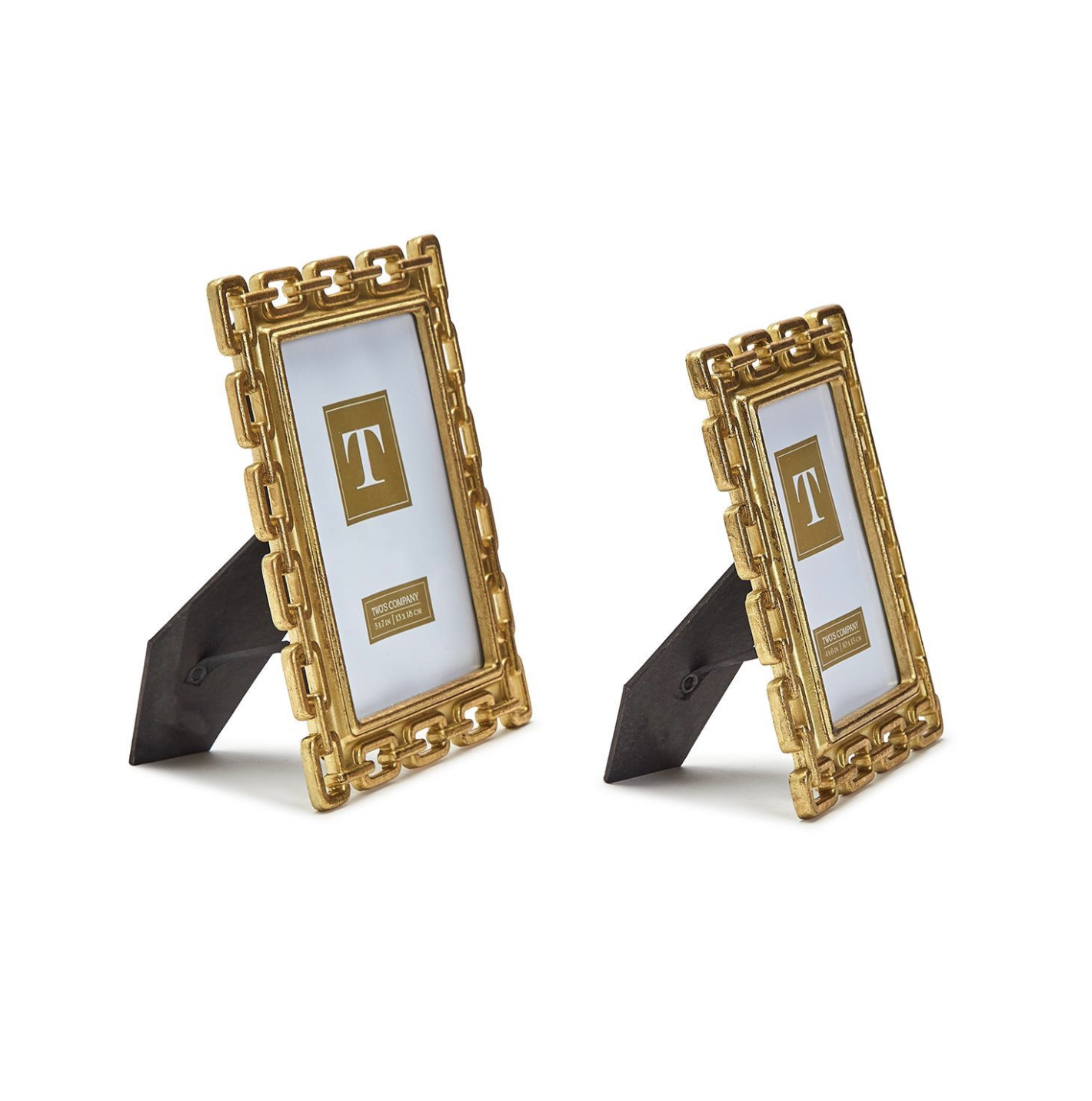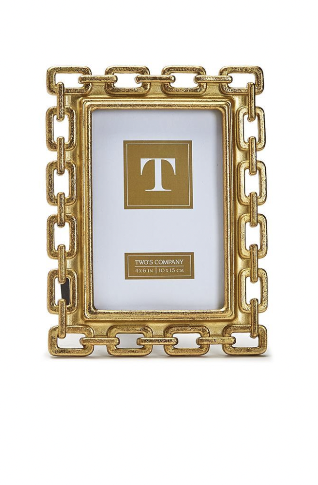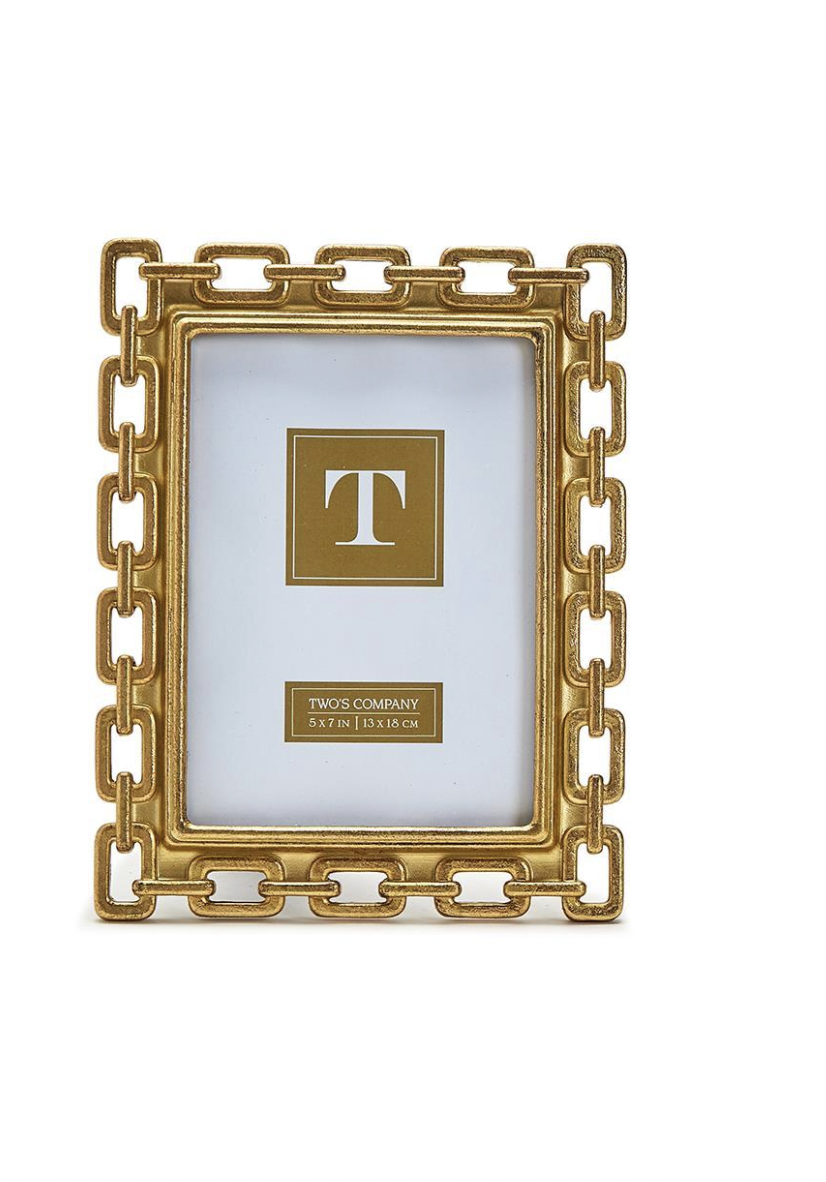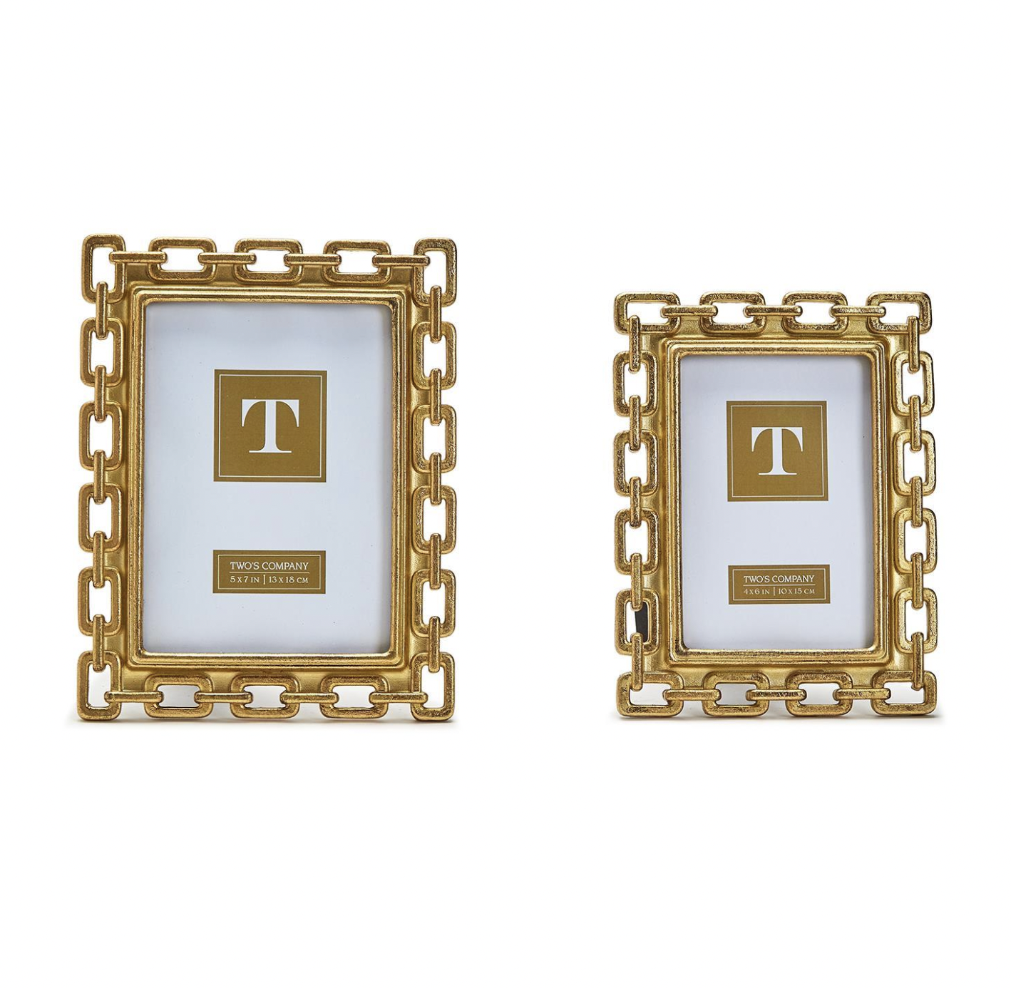 This gold chain frame is intricately detailed and crafted from resin. Finished with a velvet backing, these are beautiful frames from front to back!