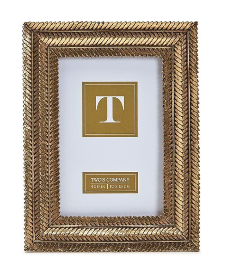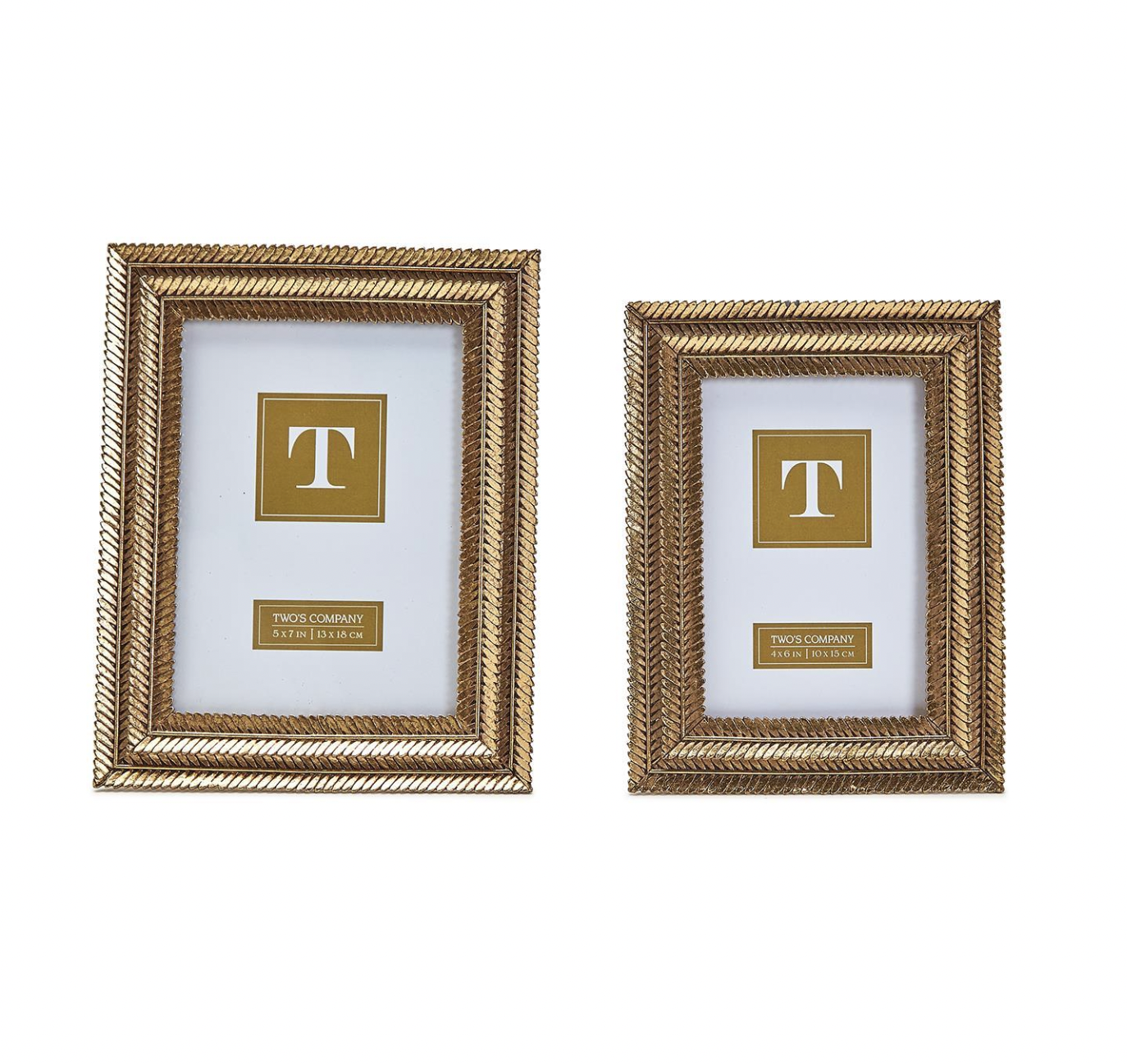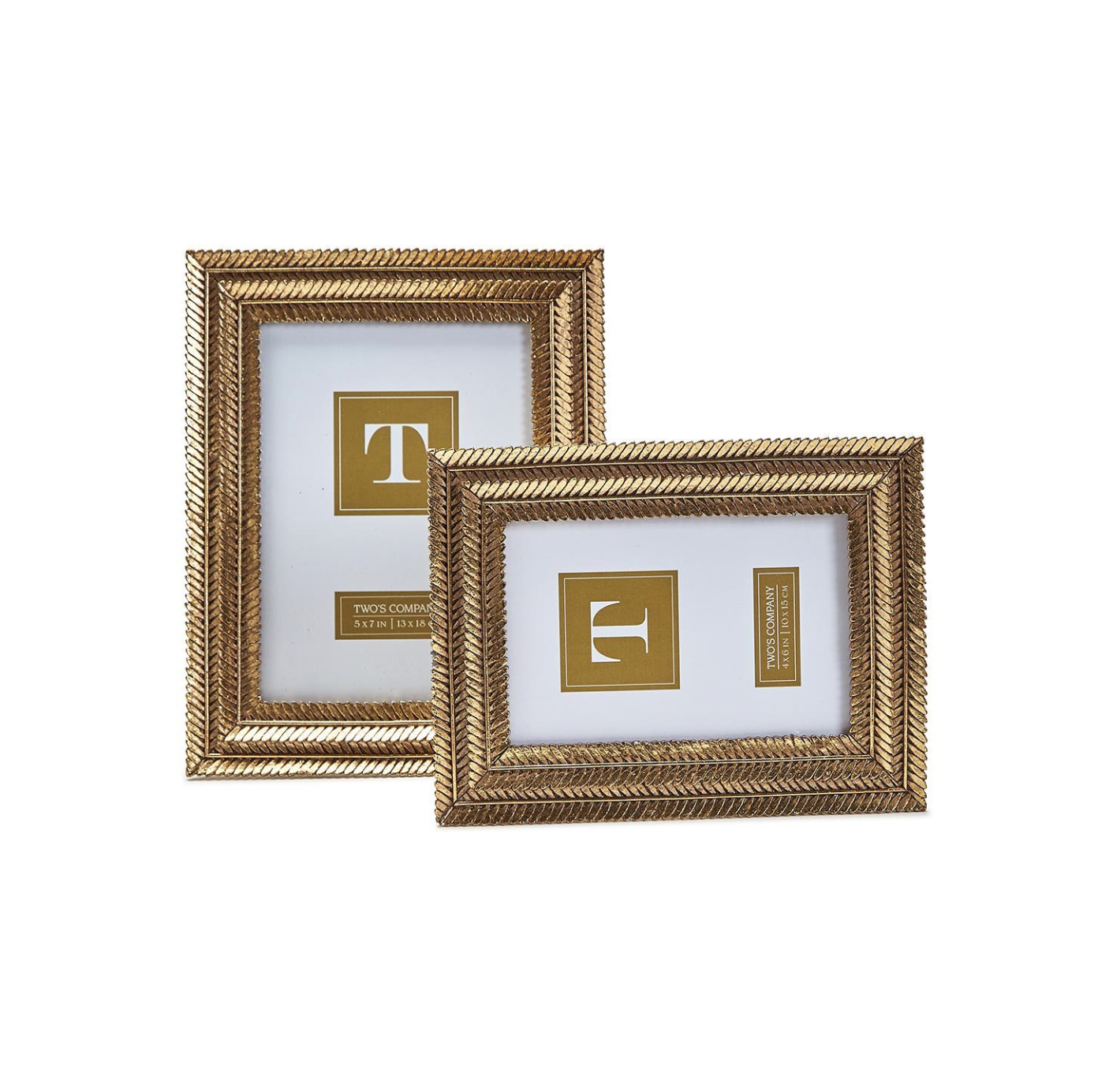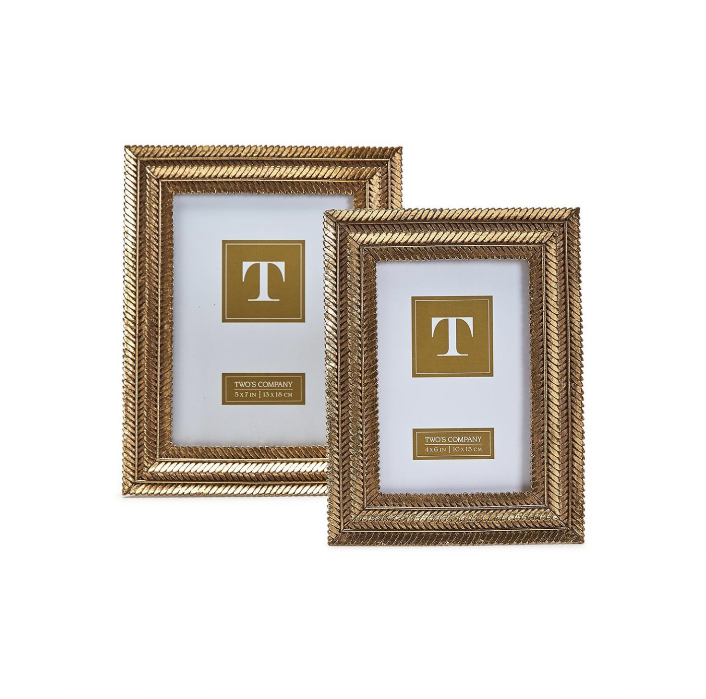 Hand-carved from resin, the elegant 3 dimensional fern leaves flow wonderfully around what ever photo that is placed into the frame. The detailing and soft and rich gold patina is sure to match many interiors.