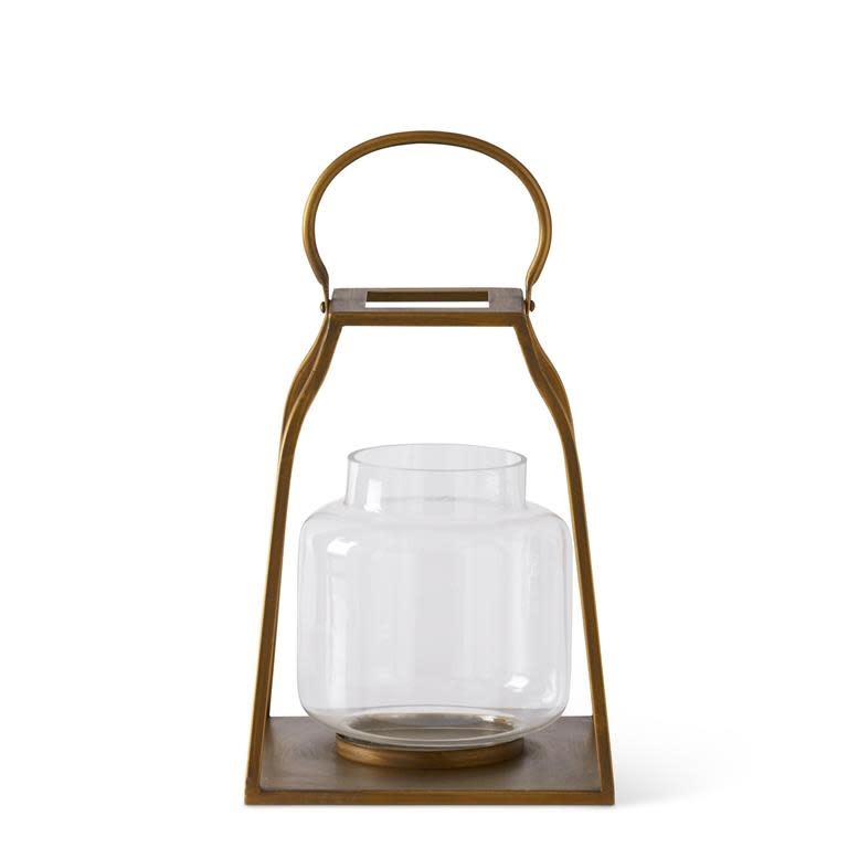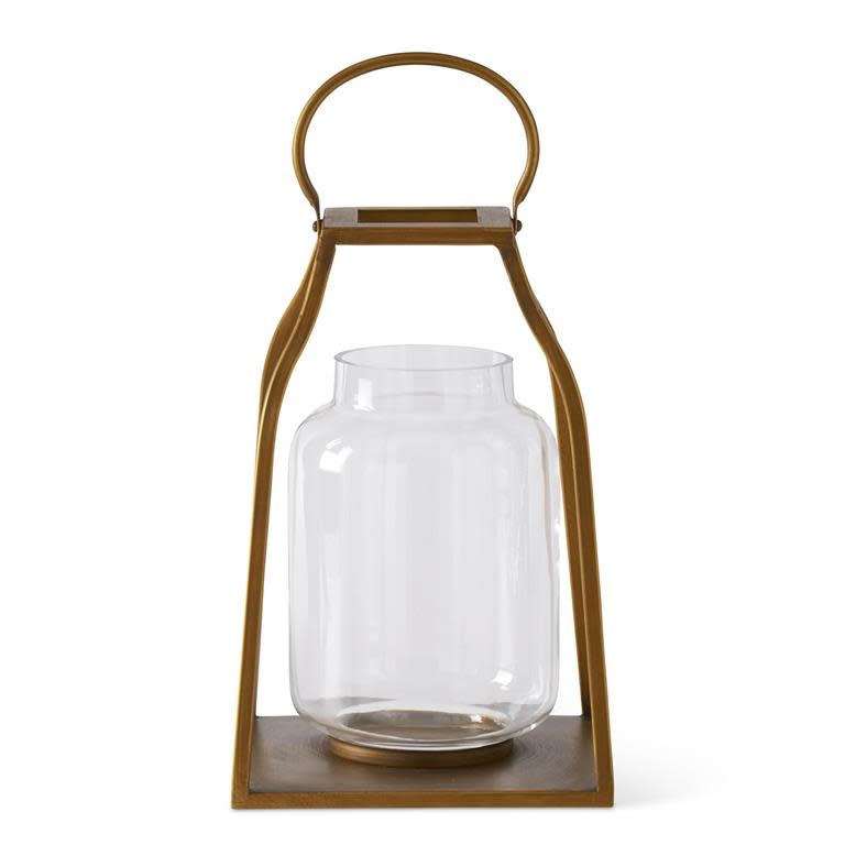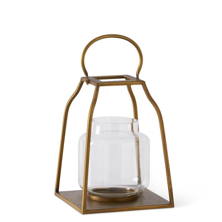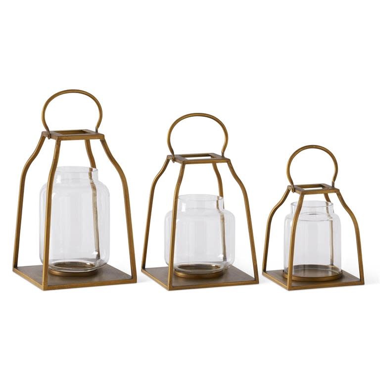 GOLD TRAPEZOID LANTERNS W/GLASS HURRICANES