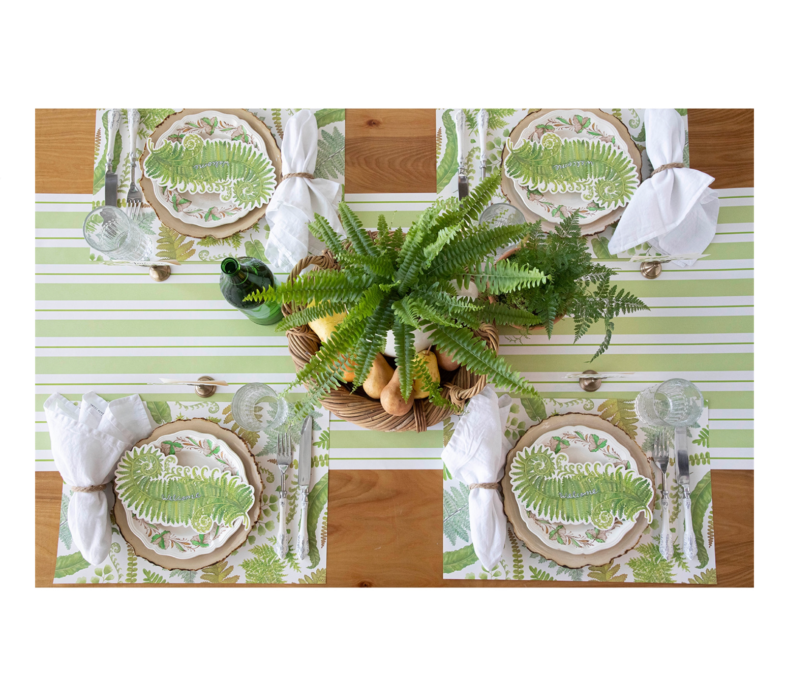 The Hester & Cook® Green Awning Stripe Runner is perfect for year round celebrations! The multi shades of green set a beautiful backdrop for spring gatherings, holiday celebrations and everyday use.