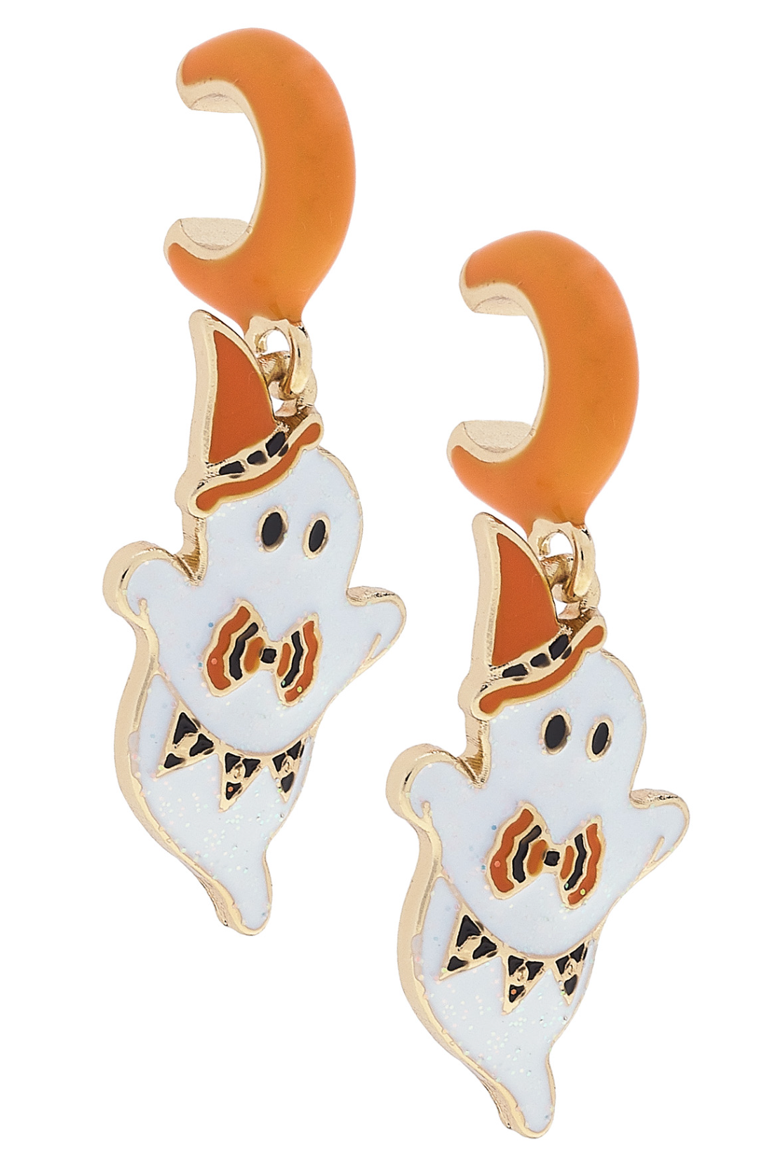 HALLOWEEN GHOST ENAMEL HUGGIE HOOP EARRINGS
