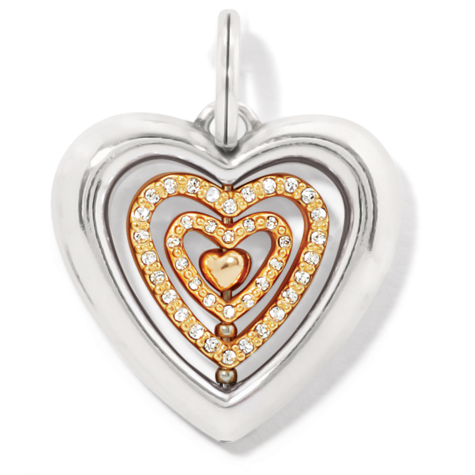 This charming little amulet multiplies its romantic effect with hearts-within-hearts. Add it to your favorite chain and mix with other silver-and-gold charms and beads.