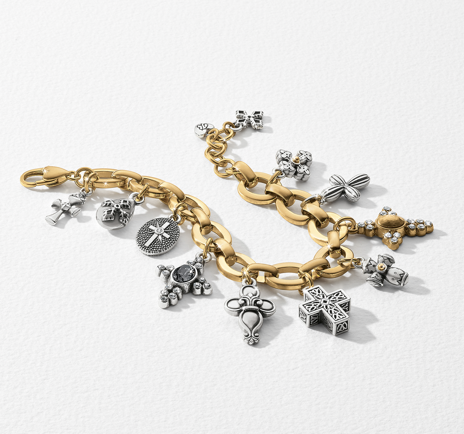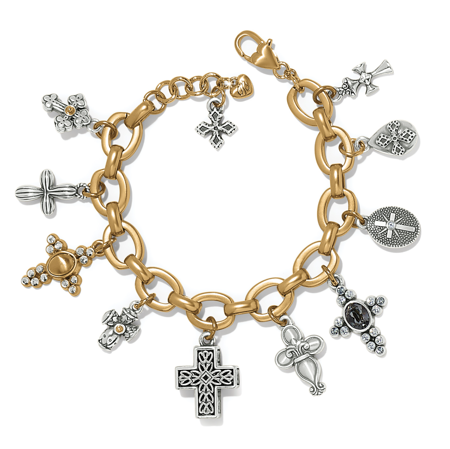 Sculptural golden, silver and mixed metal charms inspired by crosses from around the world celebrate faith in this timeless design that lets you express your beliefs every day.