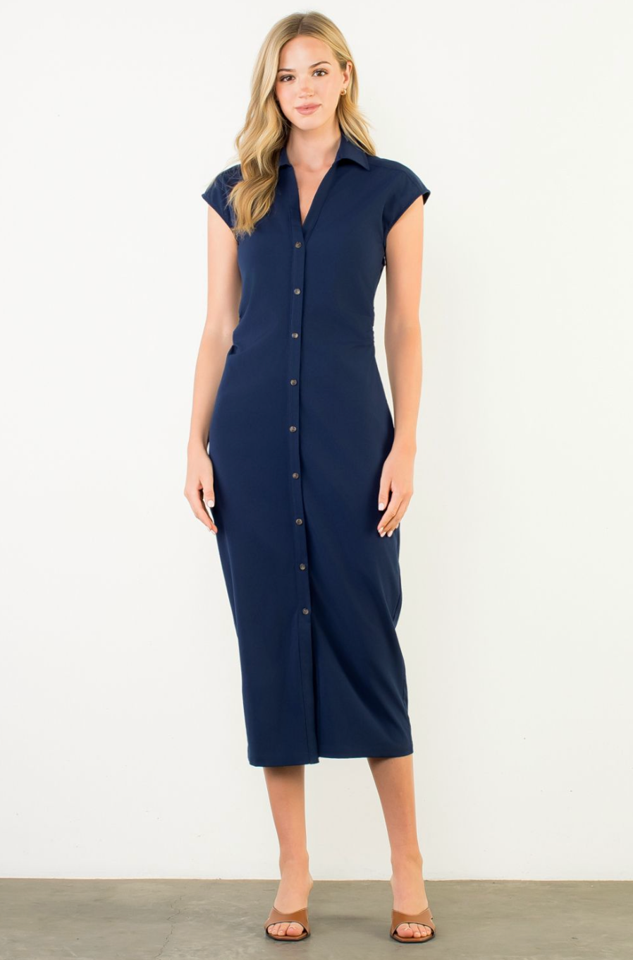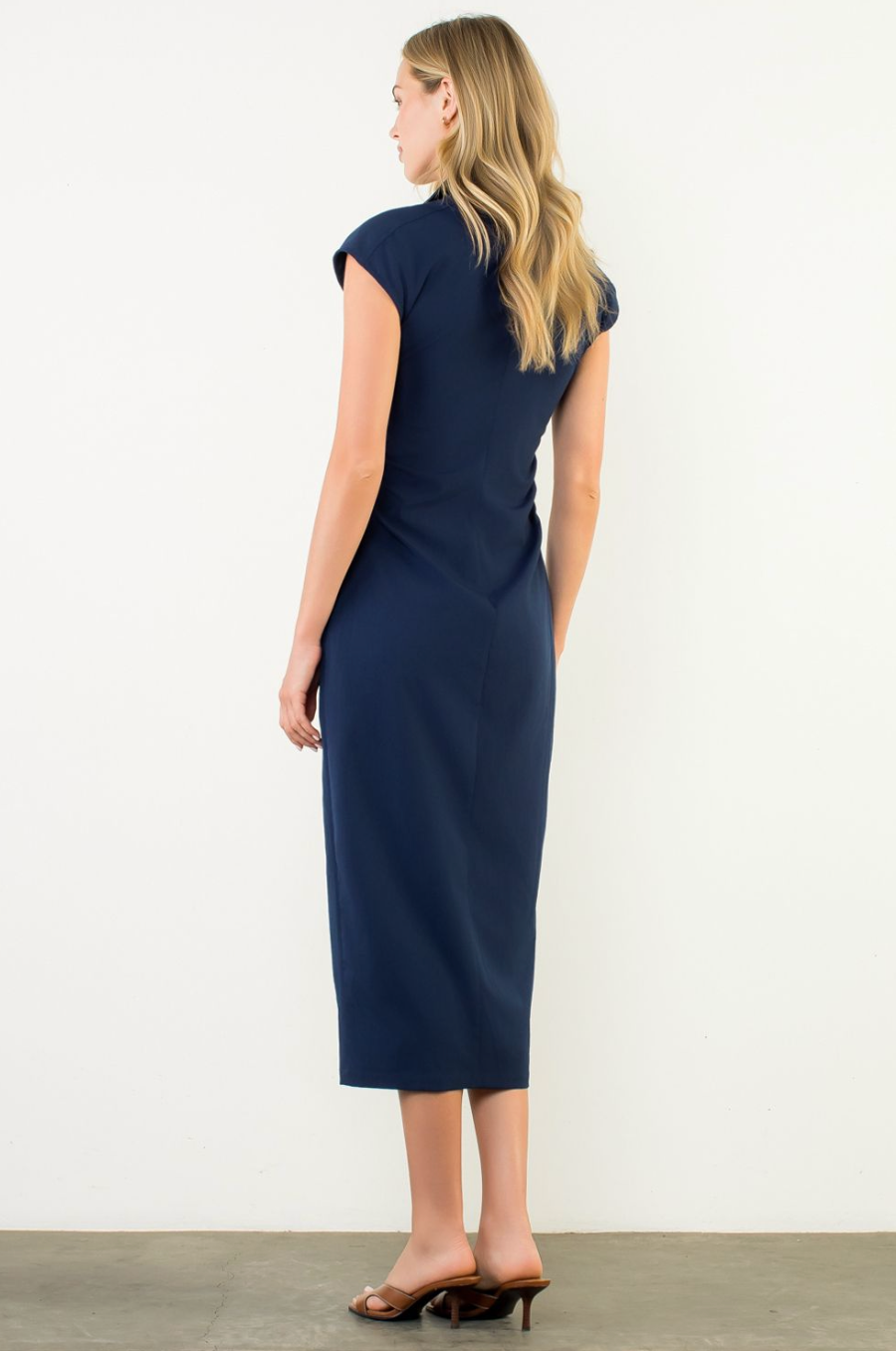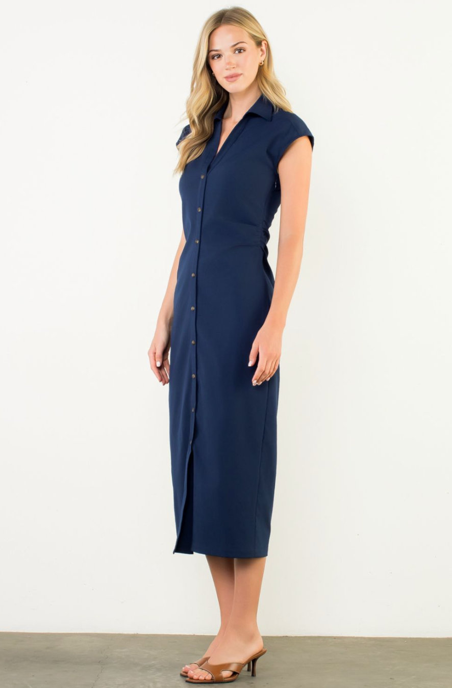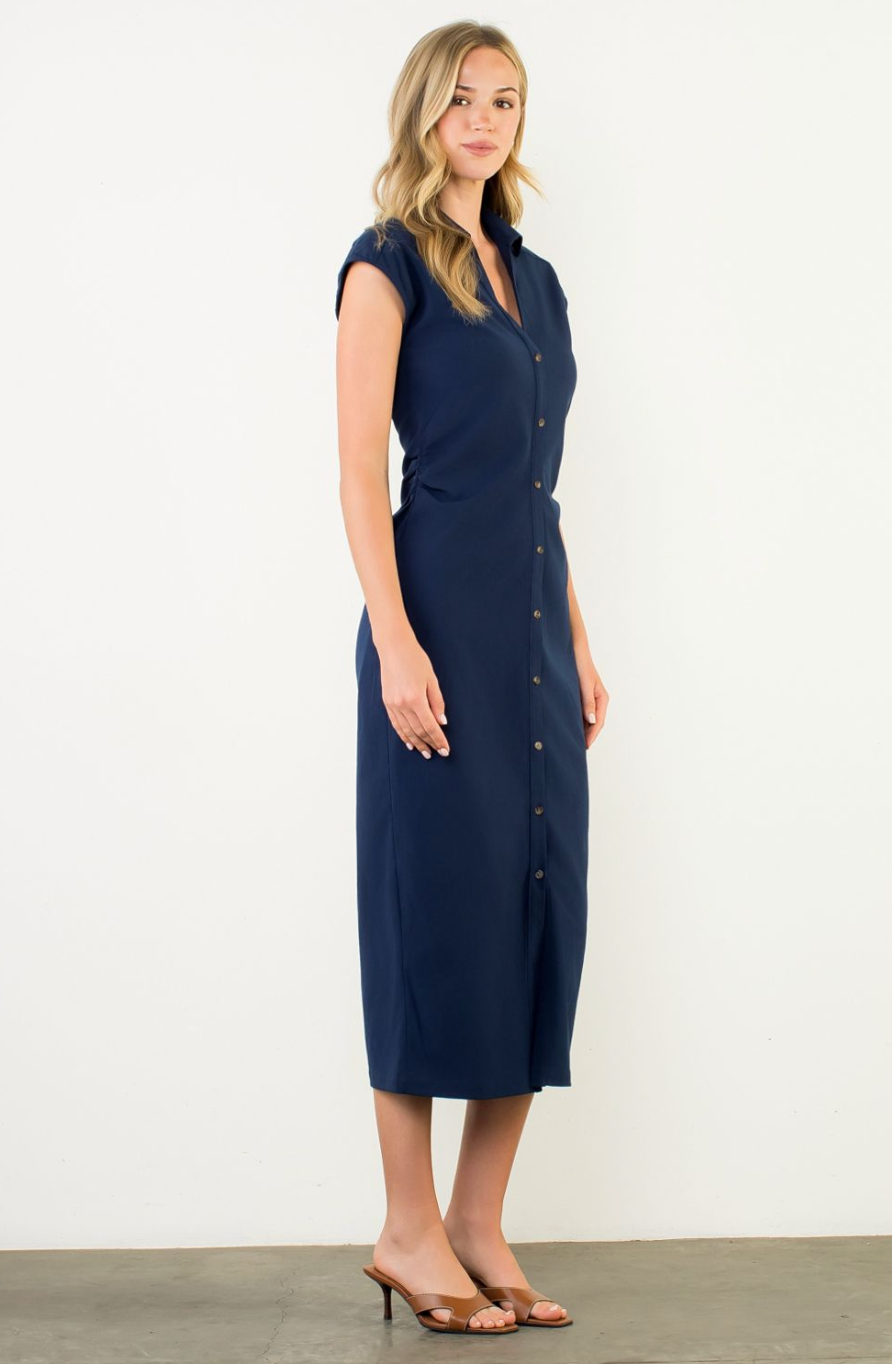 HELENE RUCHED MIDI DRESS-BLUE