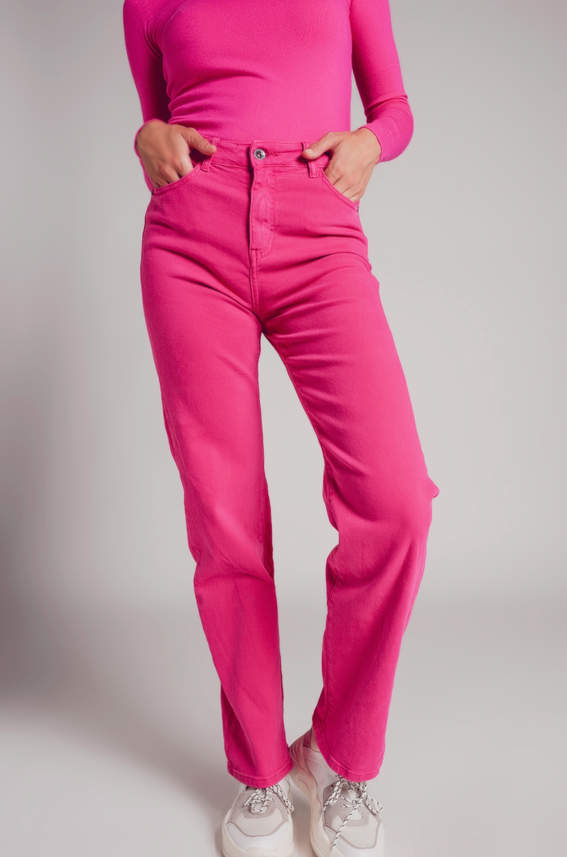 HIGH RISE SLOUCHY MOM JEANS IN FUCHSIA