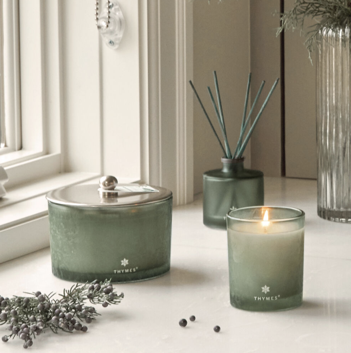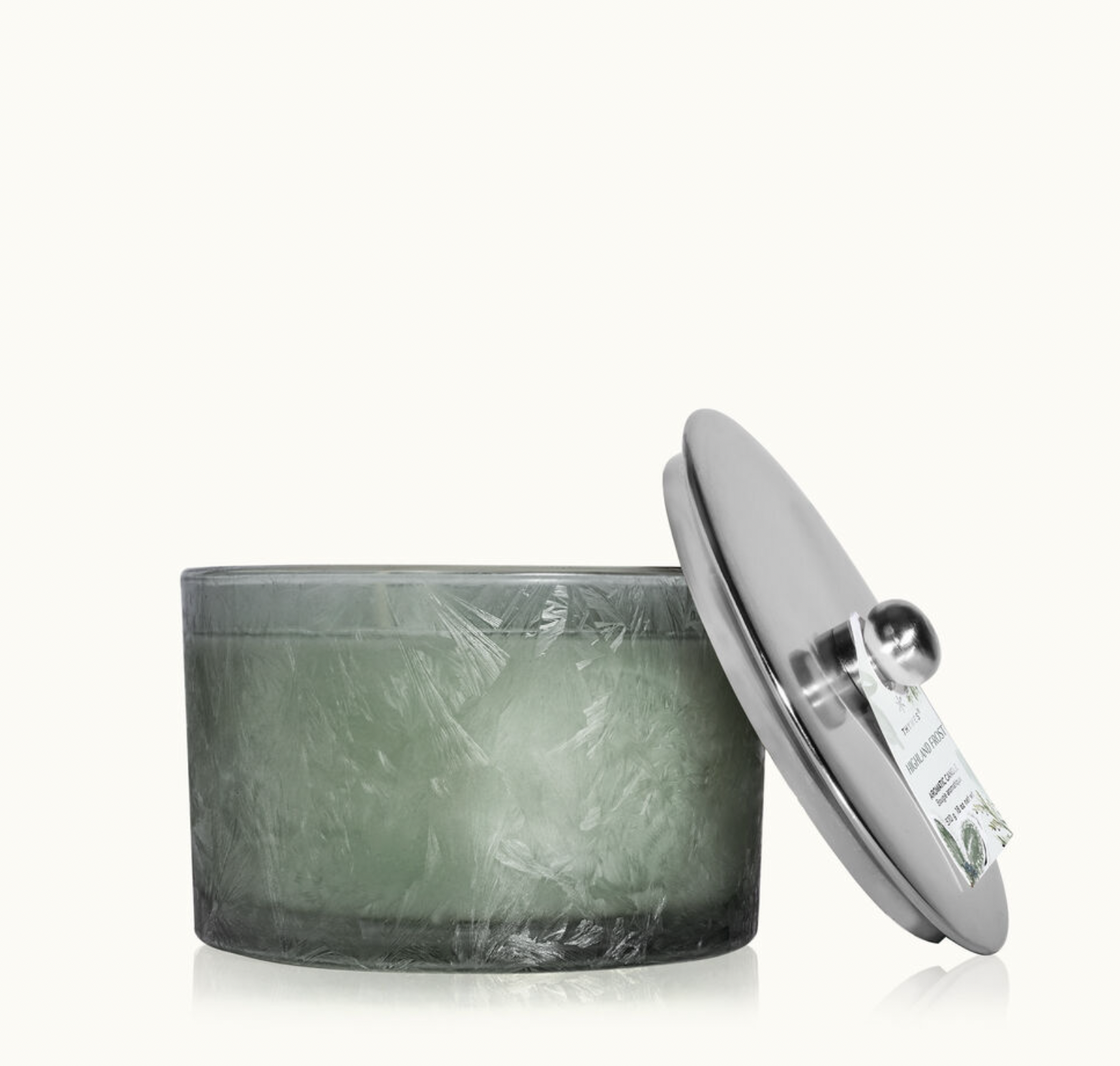 Decorate your home for the winter season and beyond with the beautiful sage-green hues accented with an icy, winter finish of the Highland Frost Large Candle. Complete with a silver lid and hang tag, this refreshing fragrance comes to life in a stunning home decor piece.