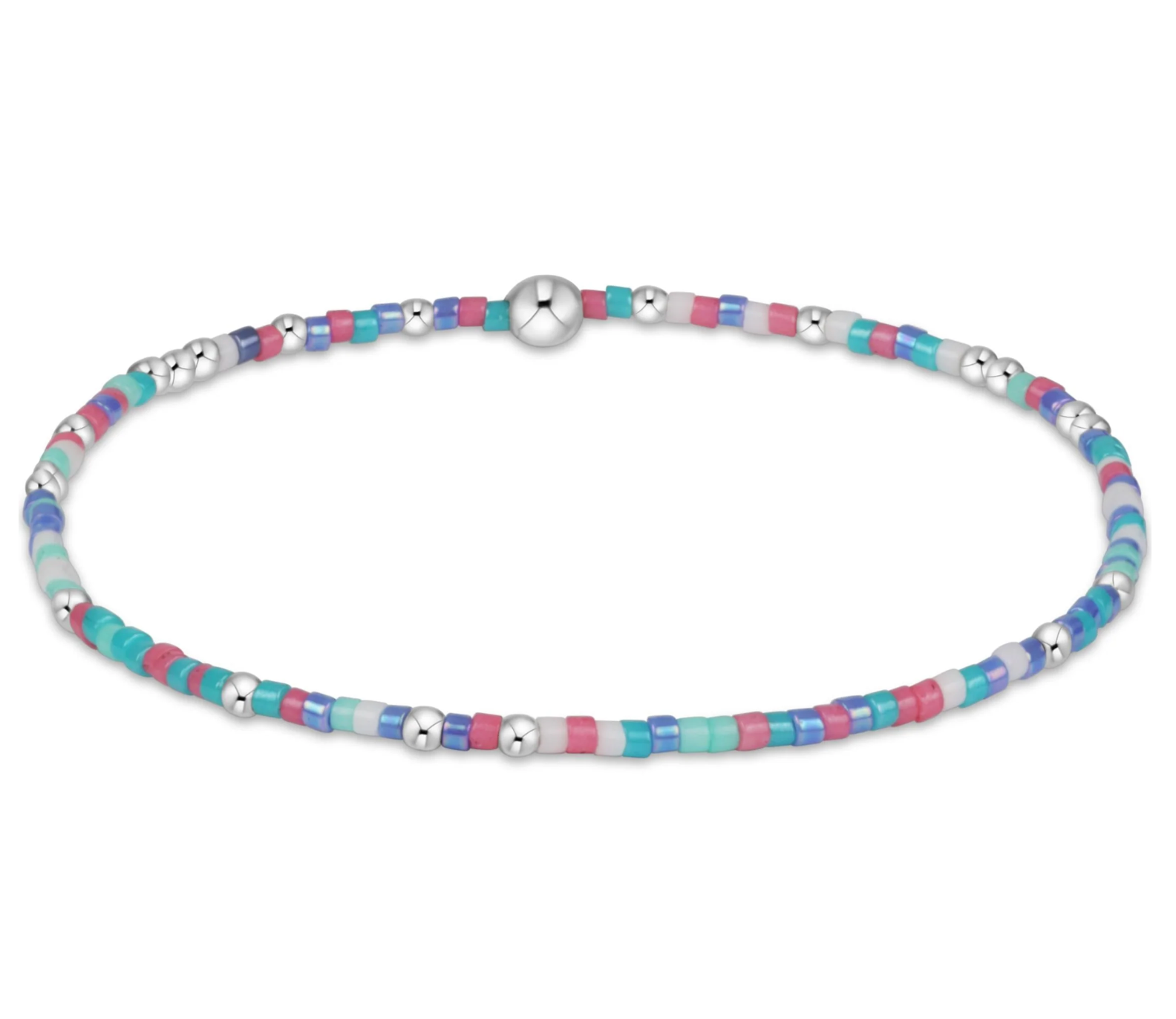 - Hand beaded on high performance elastic for a slight stretch to easily roll on and off your wrist