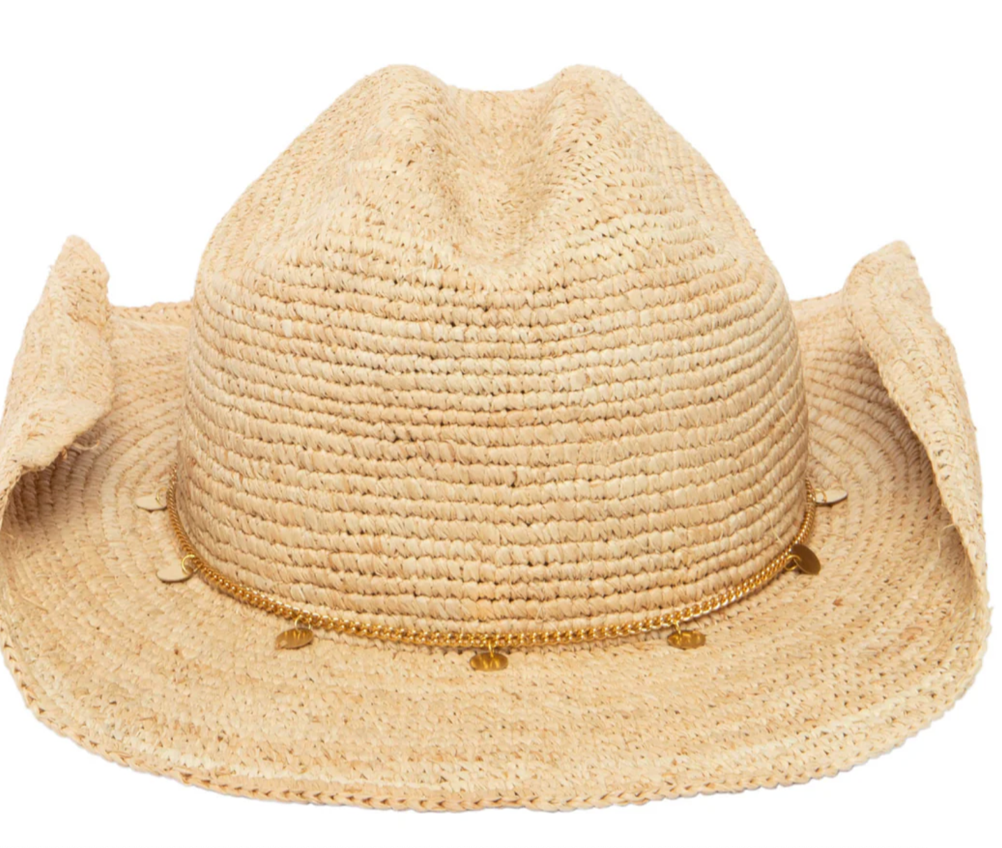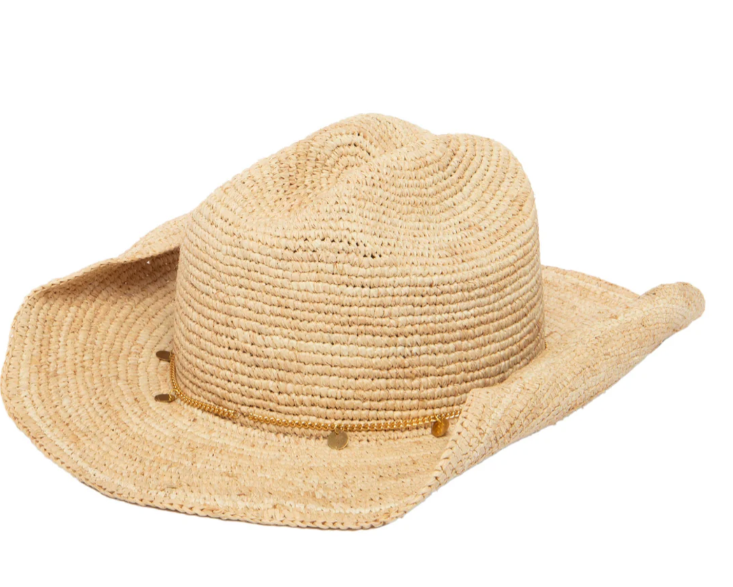 INES CROCHET RAFFIA CATTLEMAN'S HAT