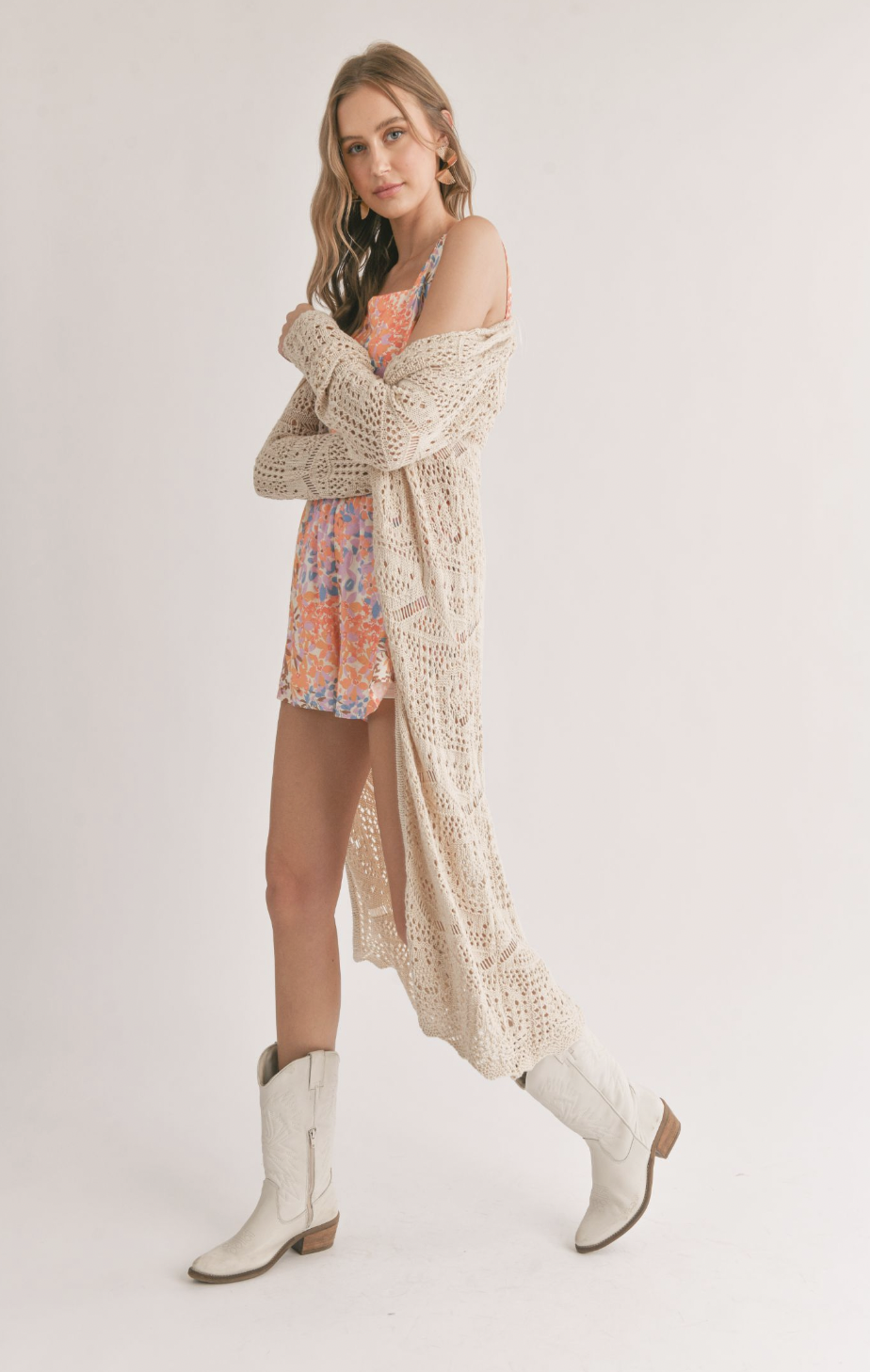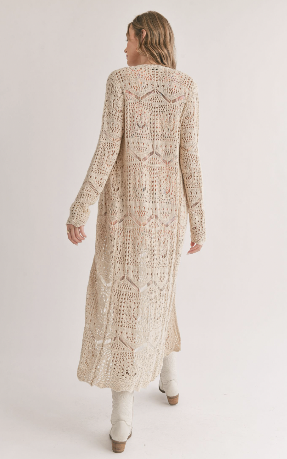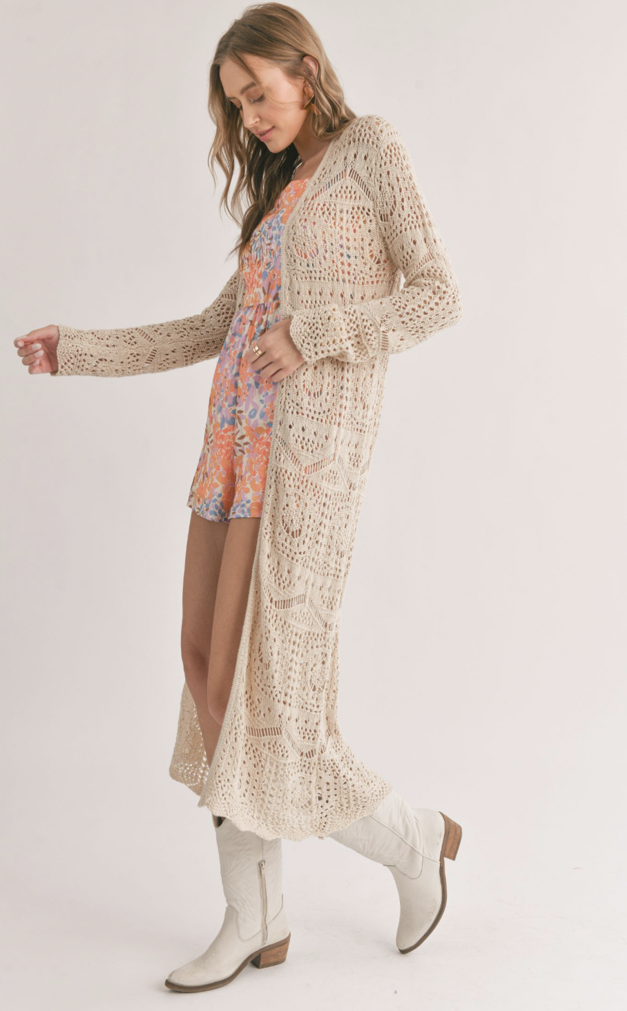 JAY LARGE POINTELLE DUSTER CARDIGAN