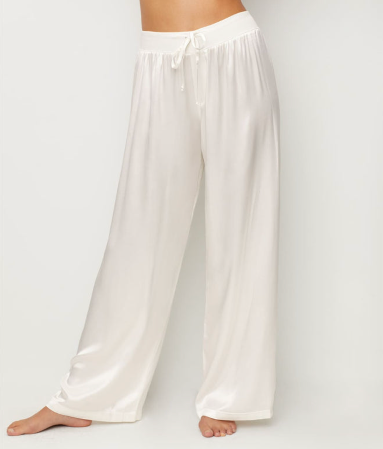 Satin Pant With Rib Waistband And Adjustable Drawstring