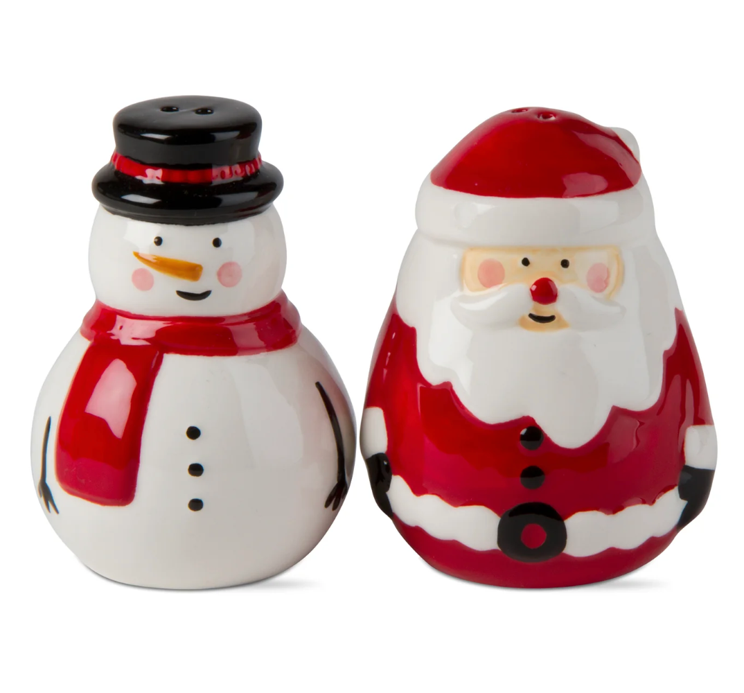JOLLY SANTA & SNOWMAN SALT & PEPPER SHAKERS SET/2