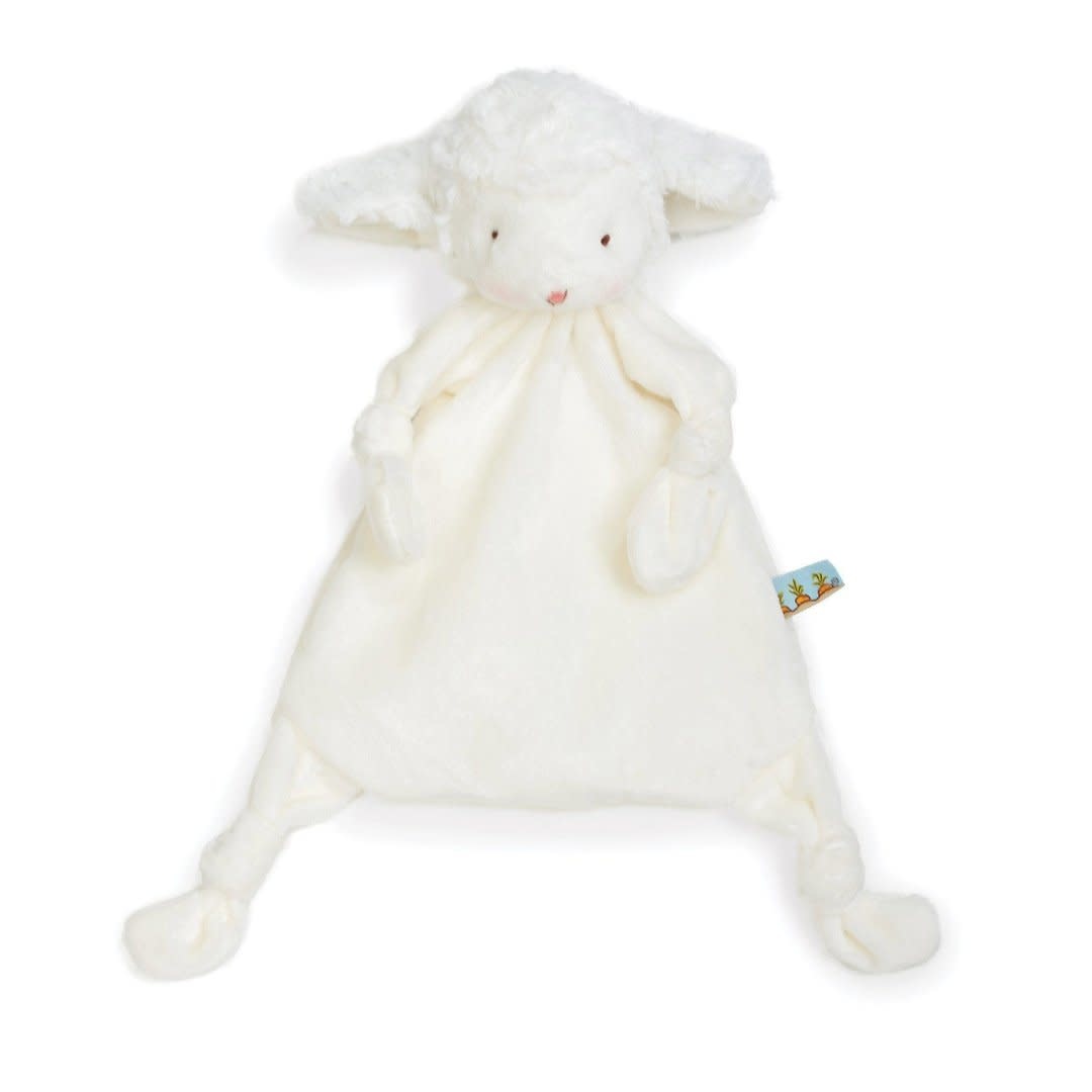 A sweet, fuzzy-faced cuddler with baby-safe embroidered face, velour floppy body in soft warm white, this knotty friend will not want to be out of your little one's hands