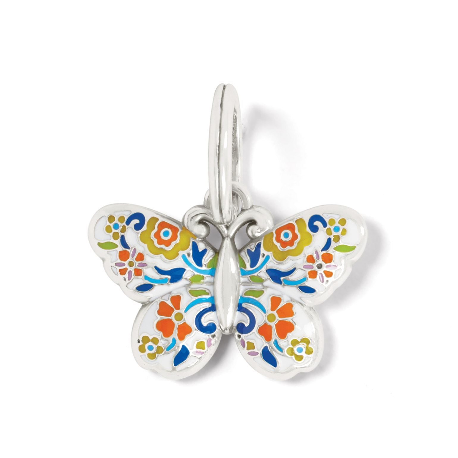 Named for the word “butterfly” in Italian, this charm features orange and lemon hues for a zesty and fun-loving feel as well as an artful vibe, plus semi-precious stone beads, accents of handset crystals and hand-painted enamel artisan detailing.