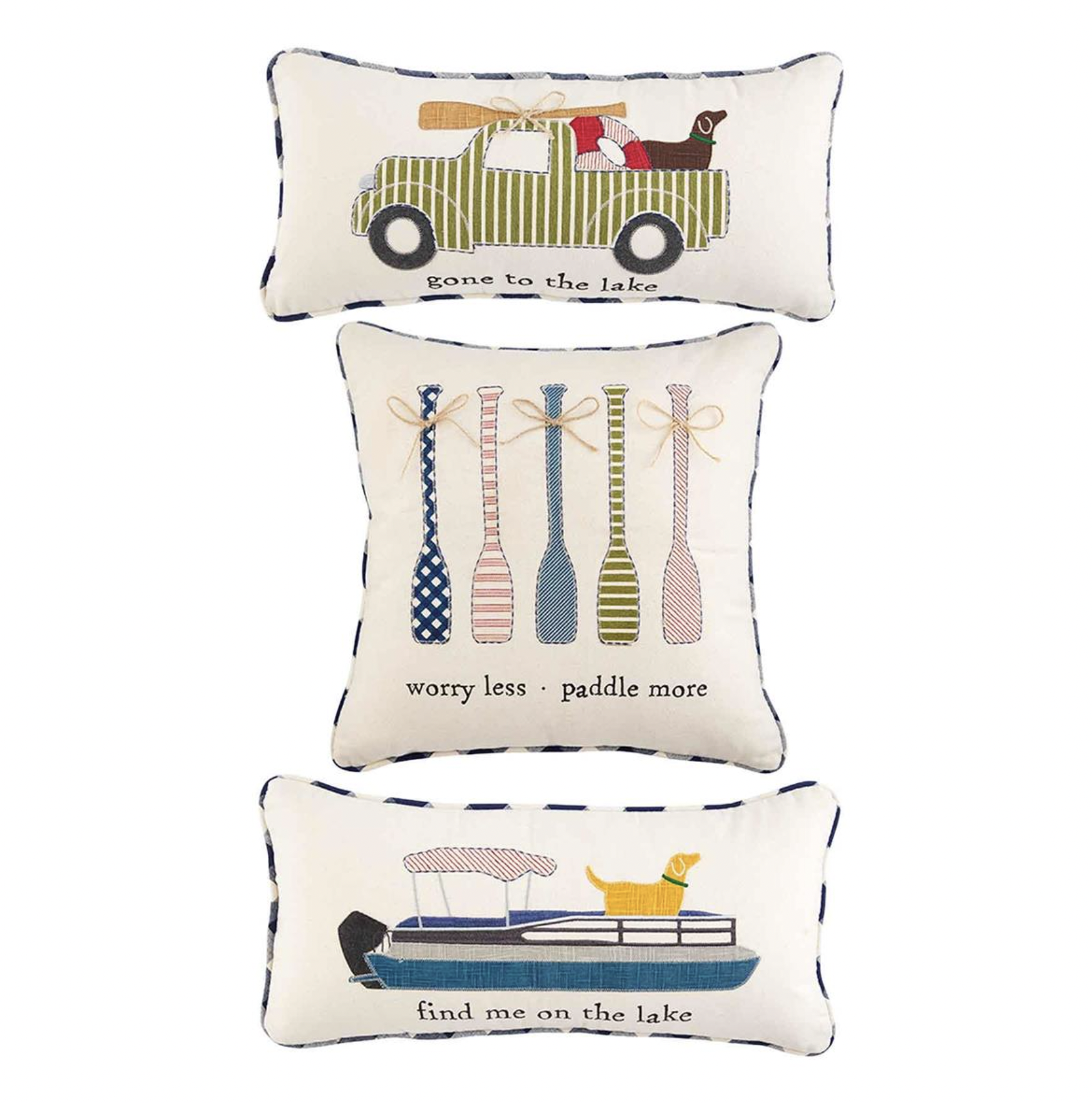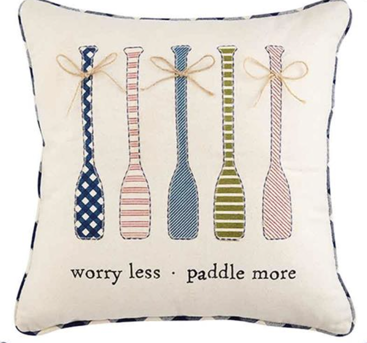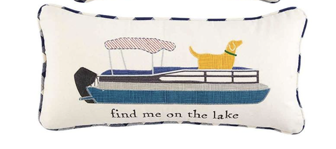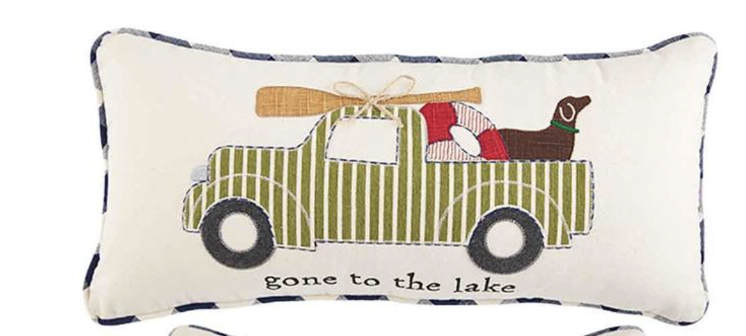 Appliqued canvas pillow features cotton buffalo check piping and backing. Zipper closure.