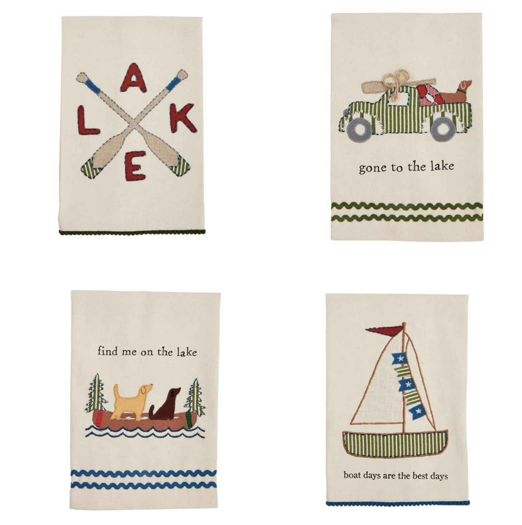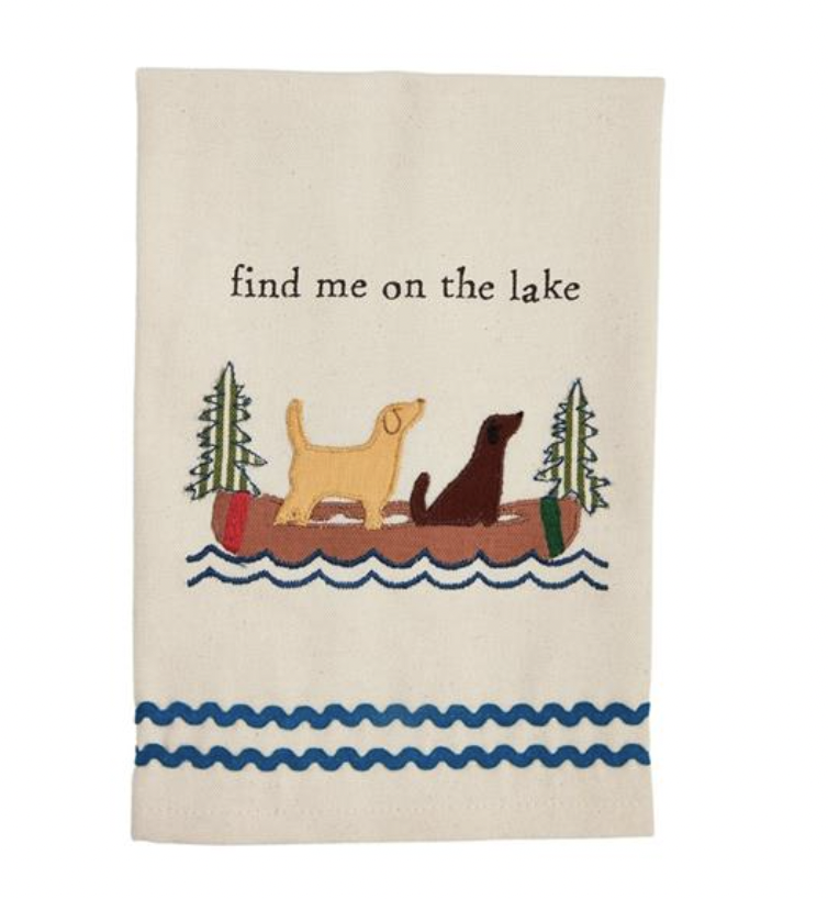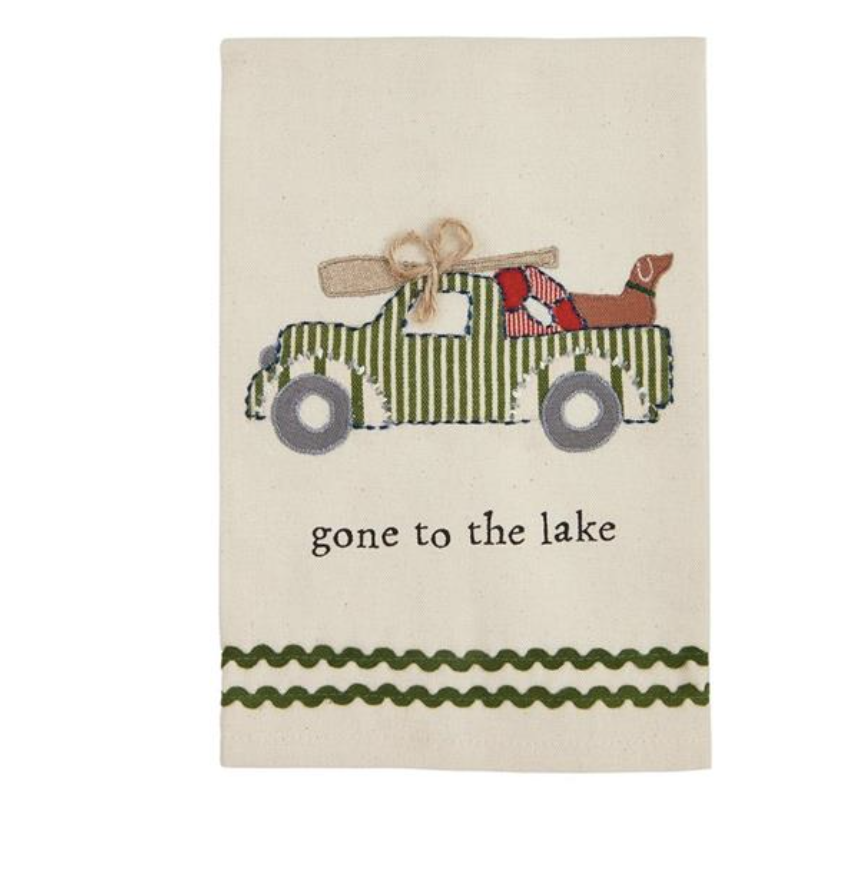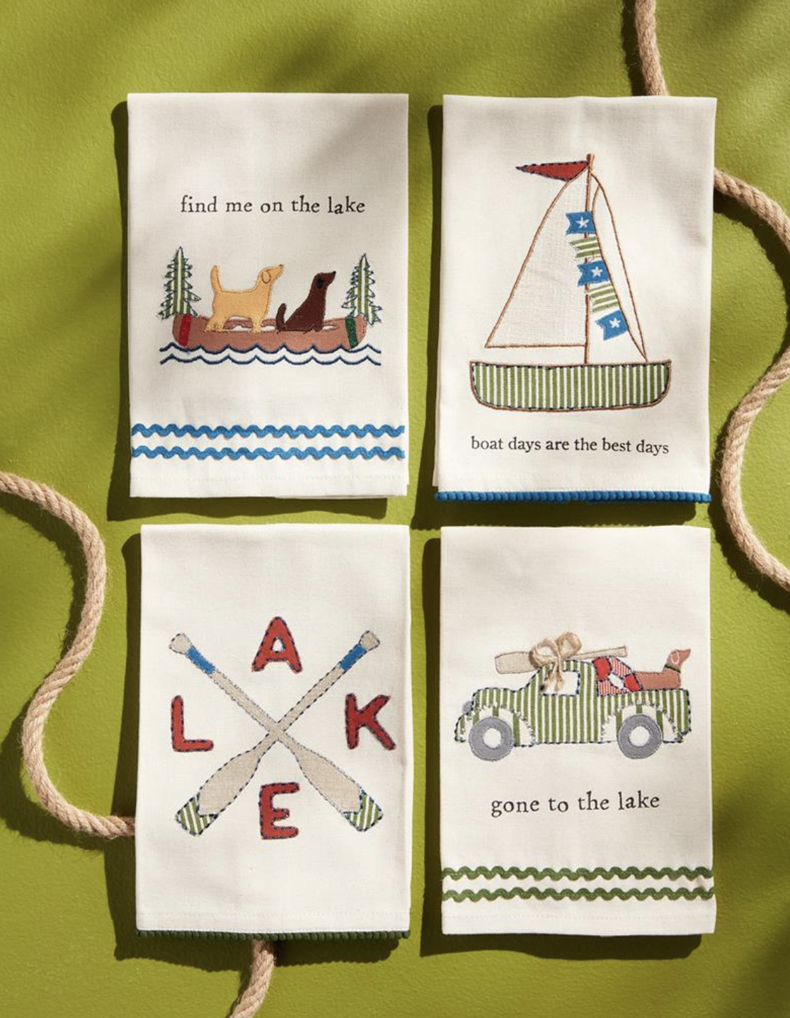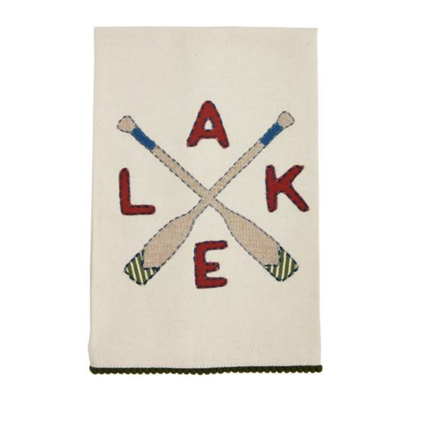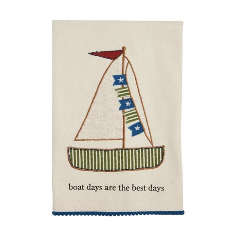 Appliqued canvas towel with ric-rac or pom pom trim.