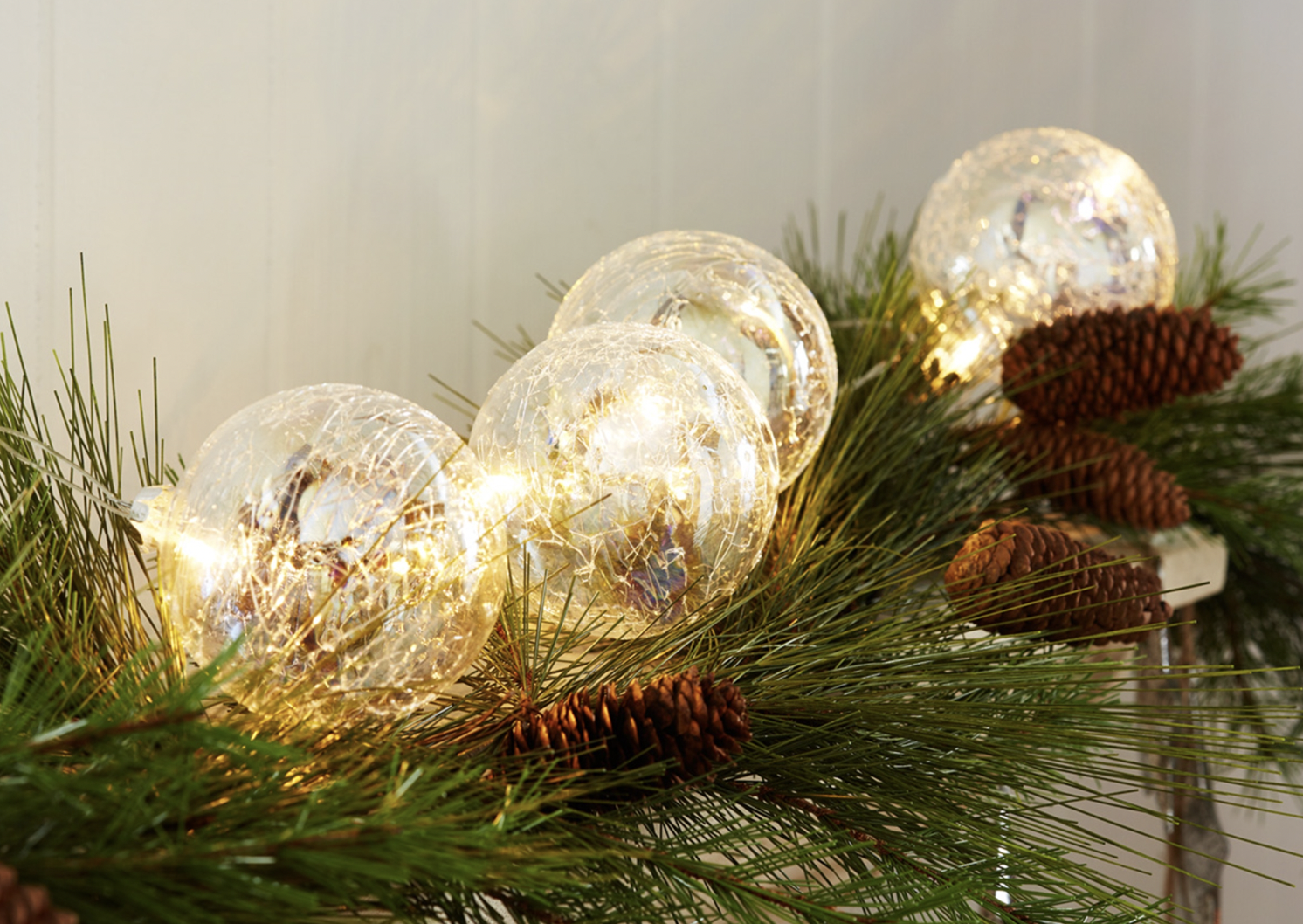 3.5" Ball Ornaments w/LED Light String 4.5'L Glass