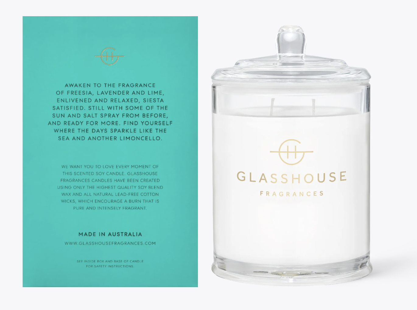 A transcendent everyday luxury, creating instant ambience with invigorating scents of Freesia, Lavender, Lime and Moss. Embrace days glistening like the sea, savoring another Limoncello in the sun's warm embrace.