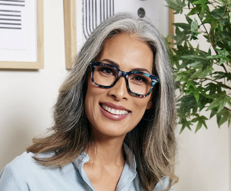 Dramatic and Dreamy. Let your light shine bright with Luster, a lively and bold design that spotlights your beauty. The flattering square frame is a canvas for the charming quartz pattern and faceted temples that create this head-turning mood booster.