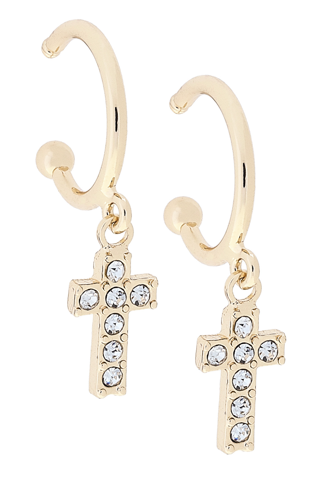 MABEL PAVE CROSS DROP HOOP EARRINGS