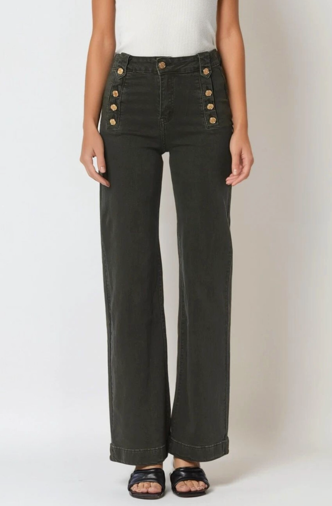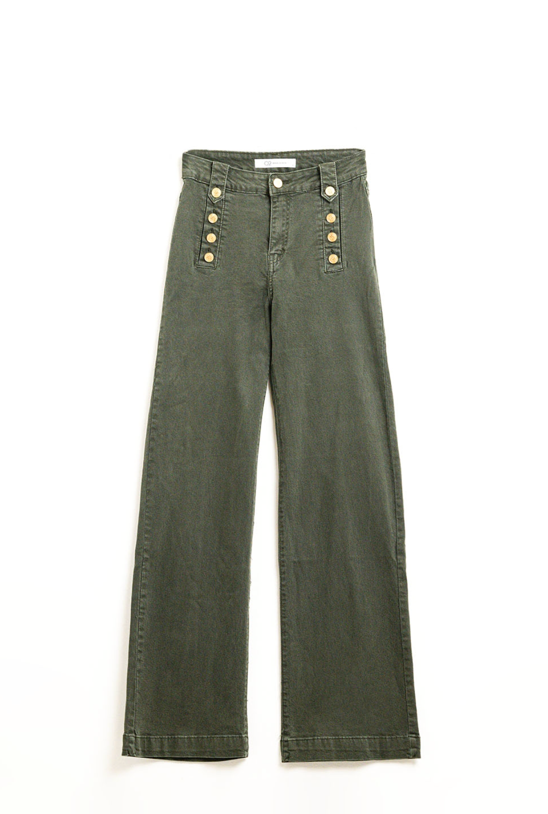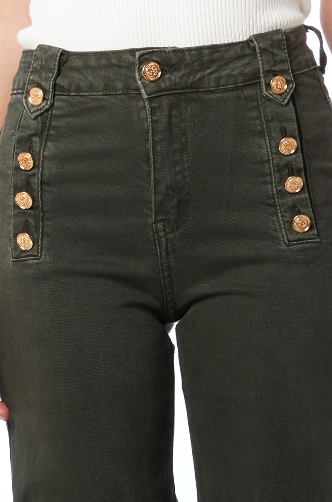 MACEY OLIVE PANT WITH GOLD BUTTONS