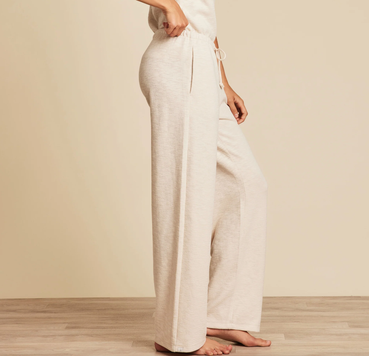 From the Barefoot Dreams Malibu Collection®, this double knit pant features a comfortable mid rise and wide leg design. With an elasticated waistband and cotton drawstring, these pants are both stylish and functional. The hidden side seam pockets add convenience to this versatile yet chic pant. Make it a set with the Malibu Collection® Slub Double Knit Tank.