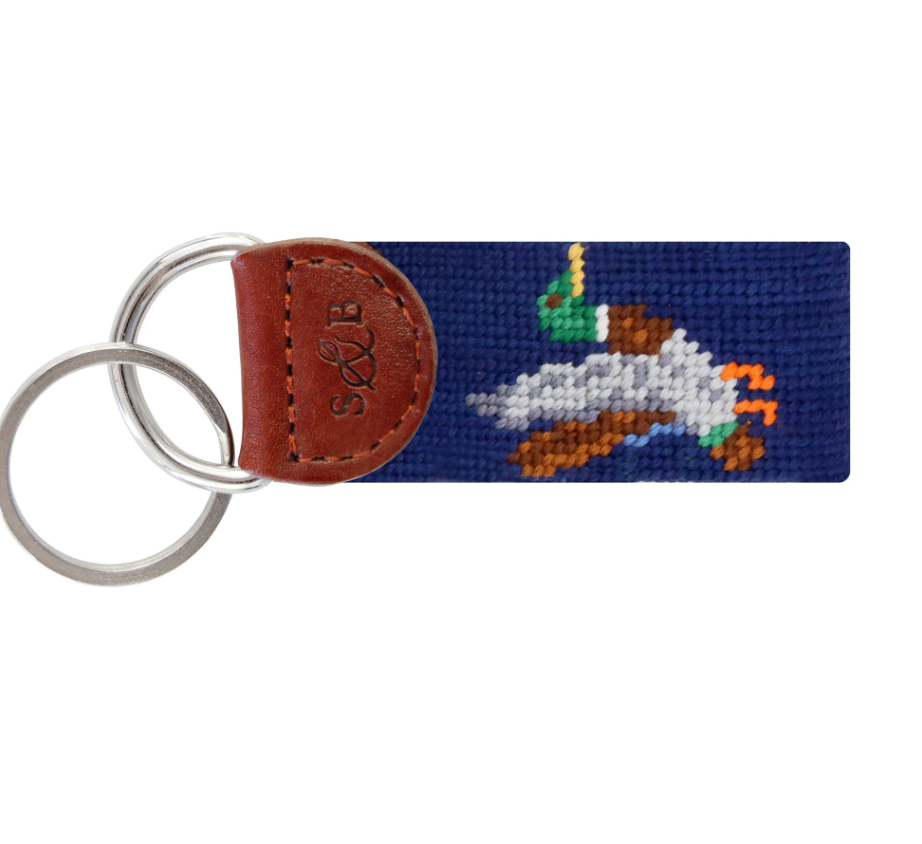 MALLARD NEEDLEPOINT KEY FOB-NAVY