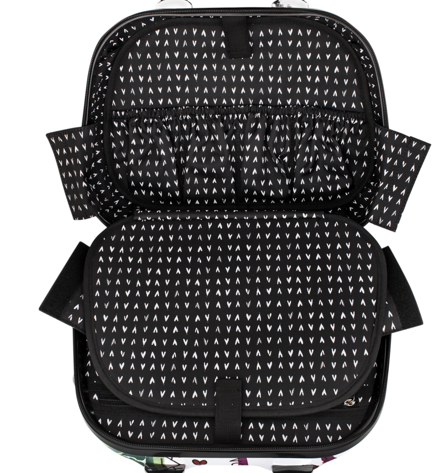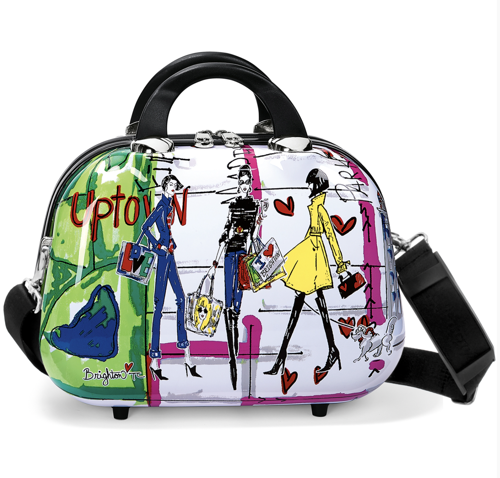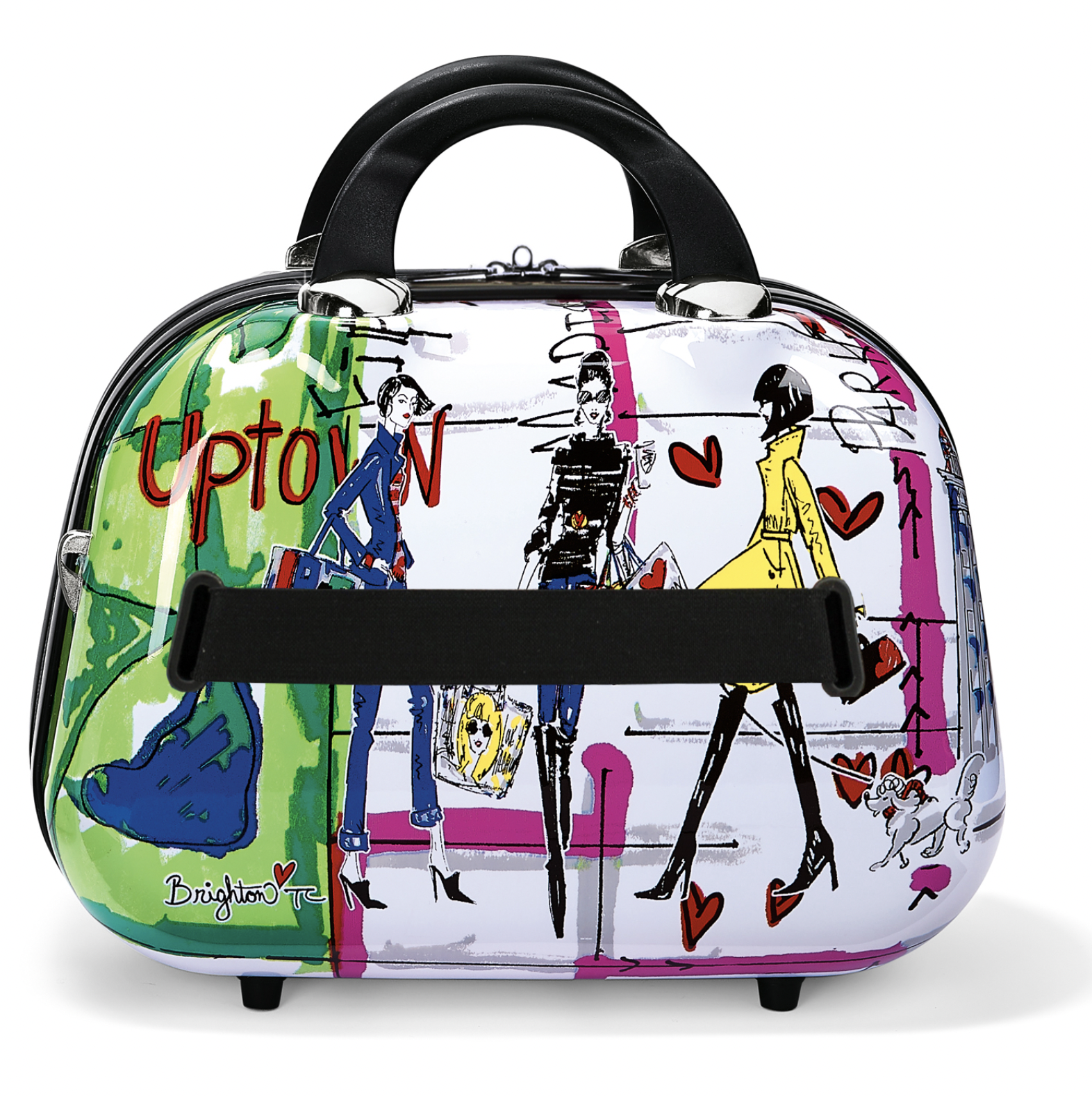 A classic silhouette is made new again with a durable, hard-shell exterior and Fashionista art from Tom Clancy. Inside, find all the organization you need with pockets aplenty--10, to be exact! Includes an elastic strap so you can secure it atop your rolling suitcase.
