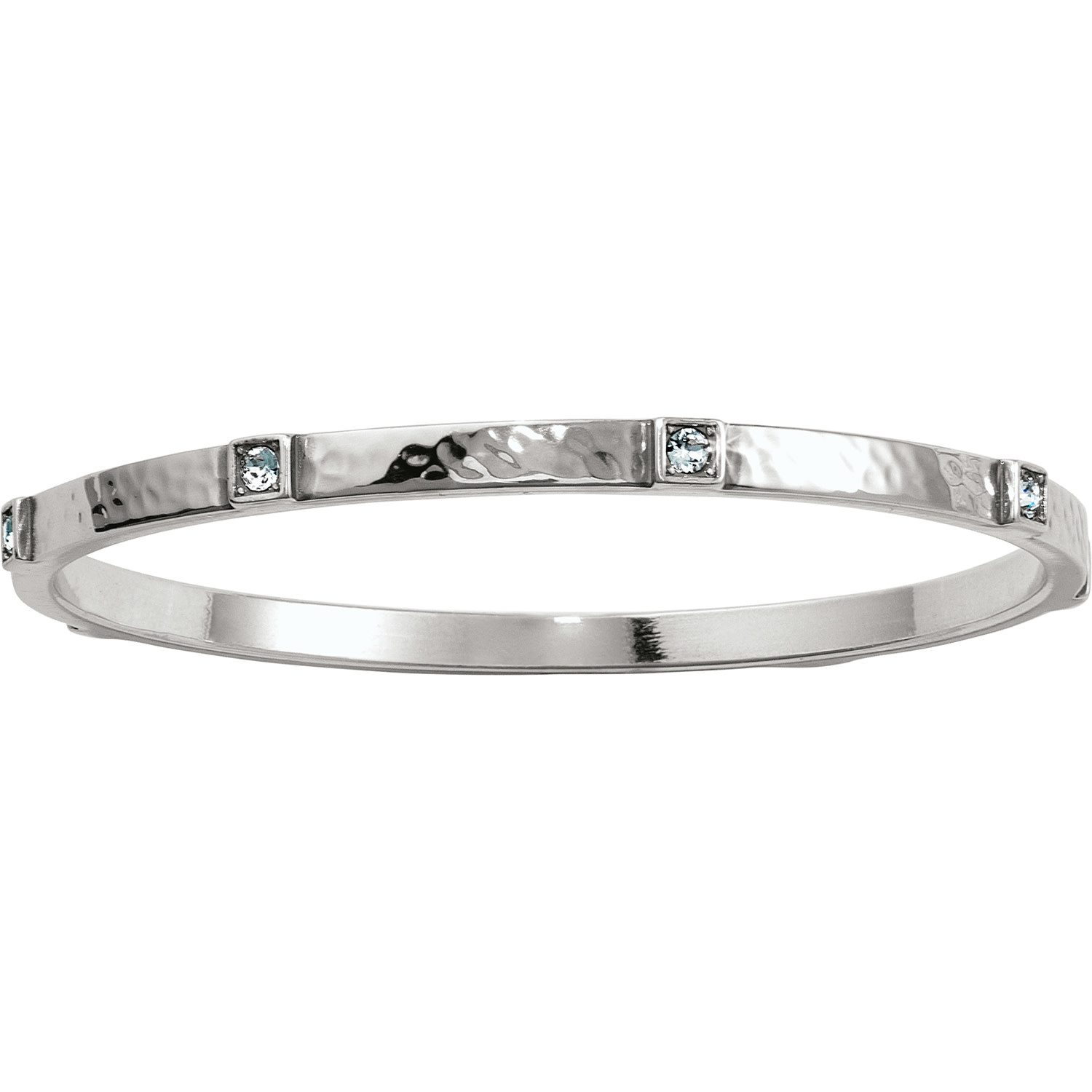 Slender and sleek, this hammered silver bangle shines, punctuated by stations of fine quality crystal in chic square frames. Great for stacking.